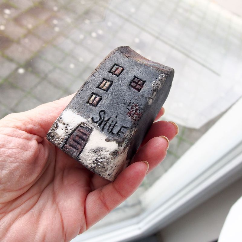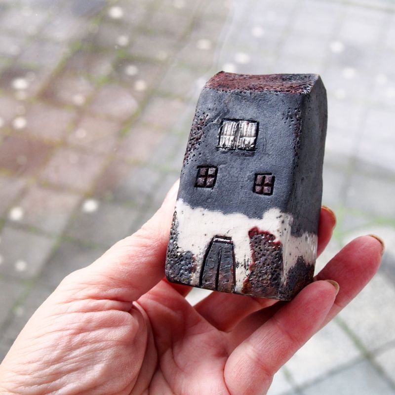 Raku ceramic little clay house, Home decor