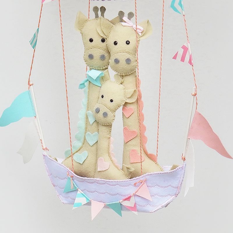 BABY MOBILE FAMILY GIRAFFE IN BALLOON/GIRAFFE DECOR FOR NURSERY/HANGING BABY MOBILE/FELT BABY MOBILE/BALLOON NURSERY DECOR/BABY SHOWER GIFT