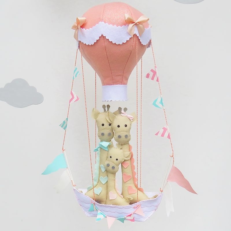 BABY GIRL MOBILE GIRAFFE/ HOT AIR BALLOON MOBILE/BALLOONS NURSERY DECOR/GIRAFFE BABY MOBILE/BABY SHOWER GIFT/FELT BALLOONS MOBILE/GIRAFFE NURSERY DECOR