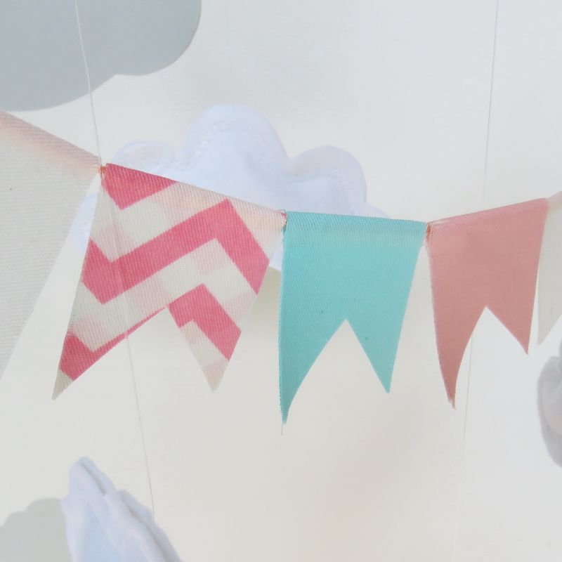 Baby mobile with giraffe in a hot air balloon. A decoration for the travel theme nursery, created in pastel colors in wool felt and 100% cotton, of excellent quality, OEKO 100 certified . An important mobile, due to the XL size of the balloon, a special decorative object in your nursery. A family of giraffes is traveling in a balloon. Customizable with the name of the newborn embroidered on a cloud or on the flags (without additional cost). Choose the colors that match your nursery! Totally customizable! Give to the little one a unique mobile! ✪ FULLY CUSTOMIZED - Before placing your order , pick your favorite fabric colors that better match the nursery room . Mail me and I can sent you other photos of the fabric colors. Customize your mobile ! ✪ SIZE : Height( from top hanger to the bottom) x width 32 X 14" ✪ In the box you will have what you can see in the photo, in addition 3 yards of cord for ceiling hanging. The mobile arm to hang from the crib is not included. Use a cup hook for ceiling hanging or a decorative plant hanger arm to hang from the wall. This is STRICTLY for decorative purposes and should never be within reach of babies or small children under 3 years of age. The tiny parts are a choking hazard for little ones. Gift-wrap available. ✪ Current turnarround 3-5 days after placing your order. SHIPPING BY UPS DELIVERY 2-3 WORKING DAYS WITH TRACKING NUMBER. Each mobile is an adorable work of art made with very much love. Any questions please contact me. E-mail: pinsandcloth@libero.it Looking forward to hearing from you soon. Cheers, Carmen ✿ ✿ ✿