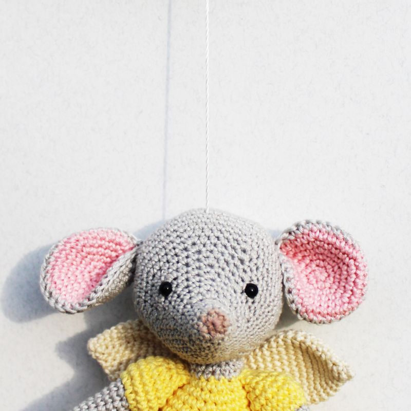 Baby Crib mobile, Animal mouse nursery decor, Mouse Mobile, mouse with angel wings, yellow mouse, baby nursery decor, yellow mobile,wings This adorable crocheted mouse with angel wings is standing under a cloud of many wishes. She is flying along to new adventures, that happening only in baby's room. Mouse and cloud are handmade from the finest cotton yarn, which allows washing in the machine at 30degrees. It is super washable. They are attached with strong string to a natural wooden ring. you can pick different colors of mouse's dress. Let me know which color do you prefer and I will be glad to crocheted it. This mouse mobile is perfect gift for baby girl. This item is not a toy. Please note that this item is only intended to stimulate the infant’s sight, to beautify the nursery and not as a game to be manipulated. Keep out of reach of a child under 3 years.