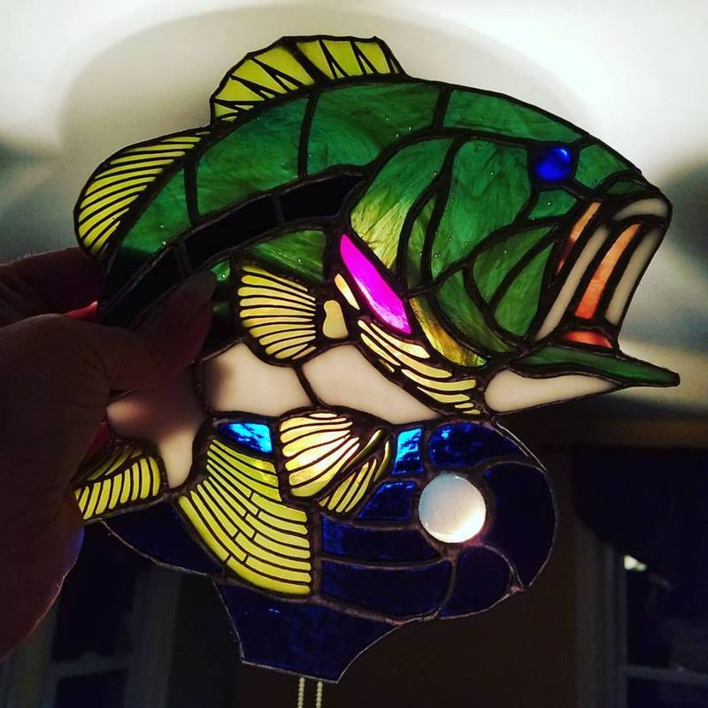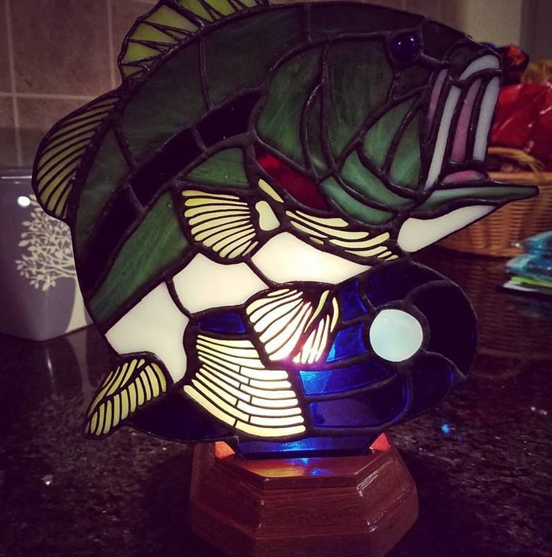 This is a must have for the Bass Fisherman in the family. It is absolutely stunning! I was inspired to make this by my Father who is a retired B.A.S.S. Elite Angler. It can be made to your specifications and colors! This will come complete with the wooden base and wiring.