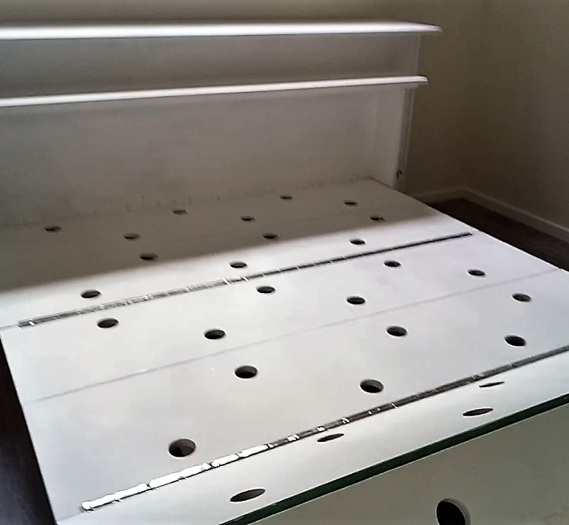 A Folding Cabinet Bed - Roll Out Bed, Folding Bed Stores Neatly Into A Cabinet When Not In Use, Space Saver Bedroom Furniture with a Scandinavian Look. A space saving bed that rolls away into a stylish cabinet when not in use. Ideal to use for guests when you need a spare bed. __________________________________________________________________________________________________________________ OPTIONS: This unit stands at a metre high and just over two metres long and 600cm deep __________________________________________________________________________________________________________________ The box unit at the back is the storage for a fold up mattress (not included) and pillows and other bedding. This unit has hinged doors either end for ease of storage. The front box unit rolls out on wheels to a queen size bed. This bed will be finished with a distressed scandinavian finish in white. __________________________________________________________________________________________________________________ SHIPPING INFORMATION: For an accurate shipping quote please send me your postal code or zip code, as each piece is a custom size and will cost a different amount to ship. The shipping cost is not included in the price listed above, it is paid separately. __________________________________________________________________________________________________________________ Designed and Made By Darryl. Thank You For Shopping With DSS Handmade.
