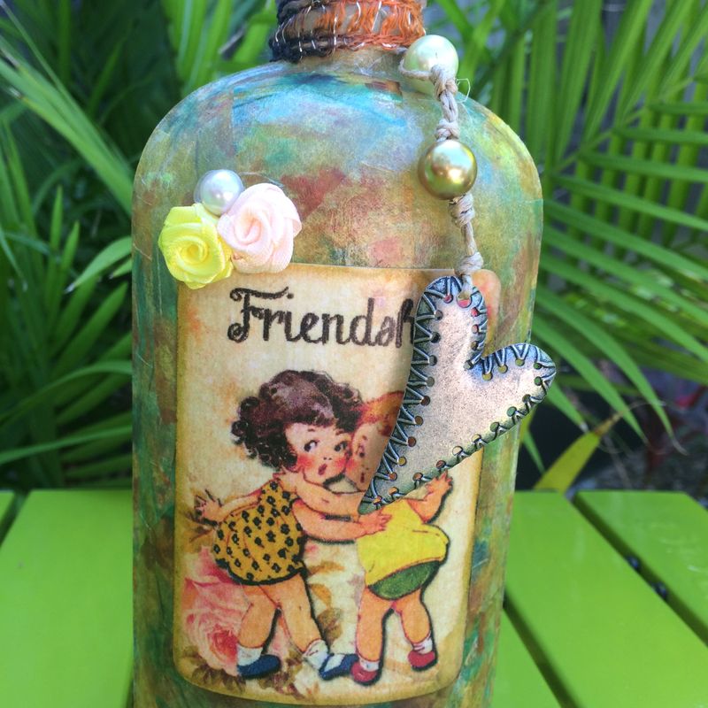 Bestfriend Friendship Decoupaged Vintage Bottle