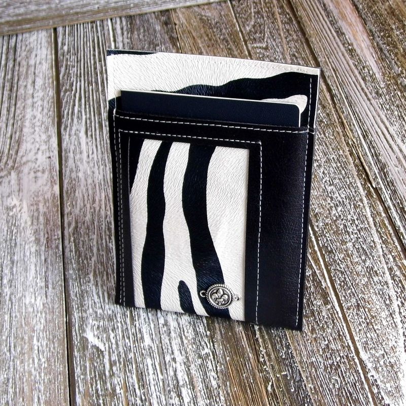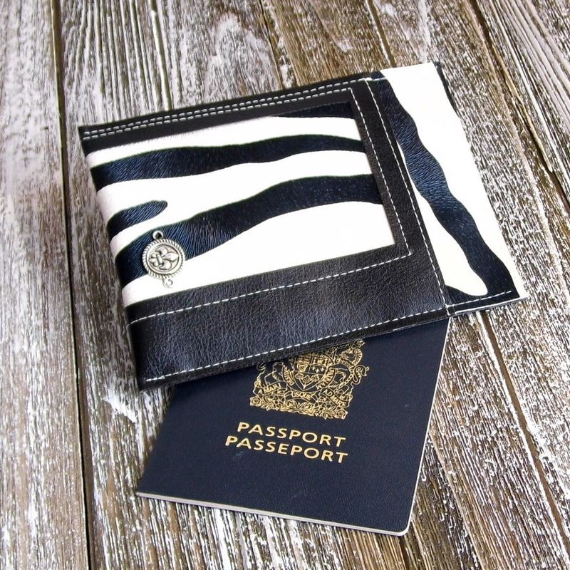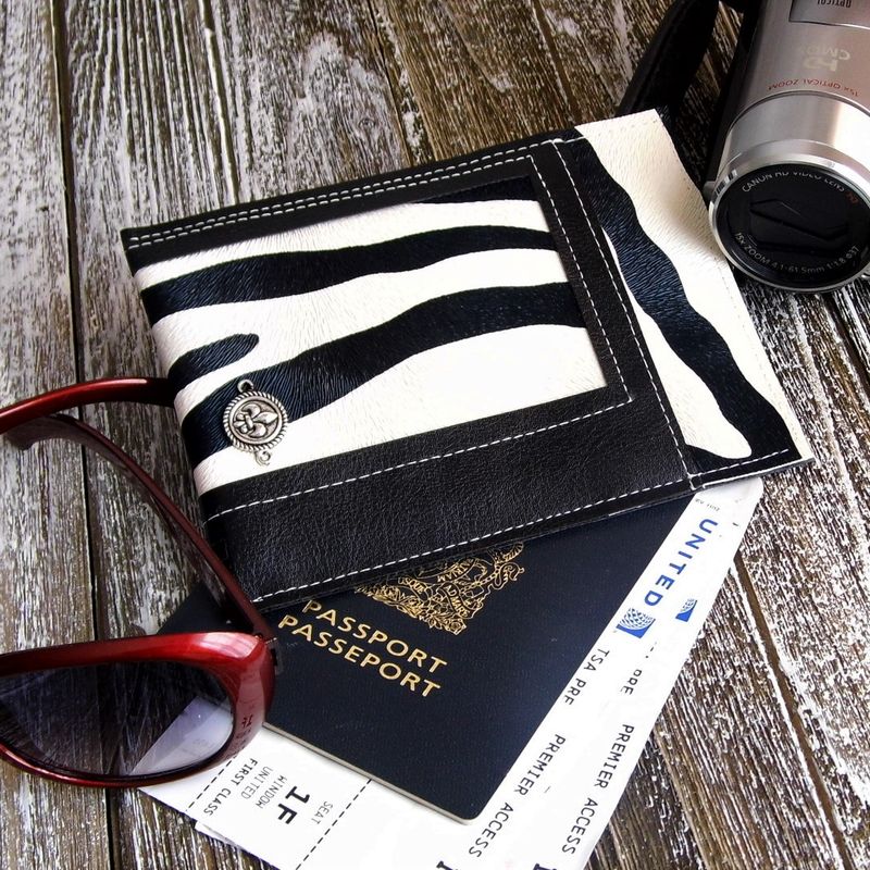 This slim travel wallet is make from a combination of black vegan leather and zebra print faux leather. Handmade with great care and attention to detail. This vegan passport holder is perfect for the single traveler. Slip your credit card, train ticket, checked luggage tag, etc., and you’re all set for your trip. Your currency bills can easily be slipped behind your passport. This passport case fits beautifully into your clutch purse. Approximate size: (H): 5" x (W): 4" Available from my Etsy shop: https://www.etsy.com/listing/581924812/passport-sleeve-black-and-white-passport?ref=shop_home_active_11 Please contact me if you have any questions. www.etsy.com/shop/Gennhaio