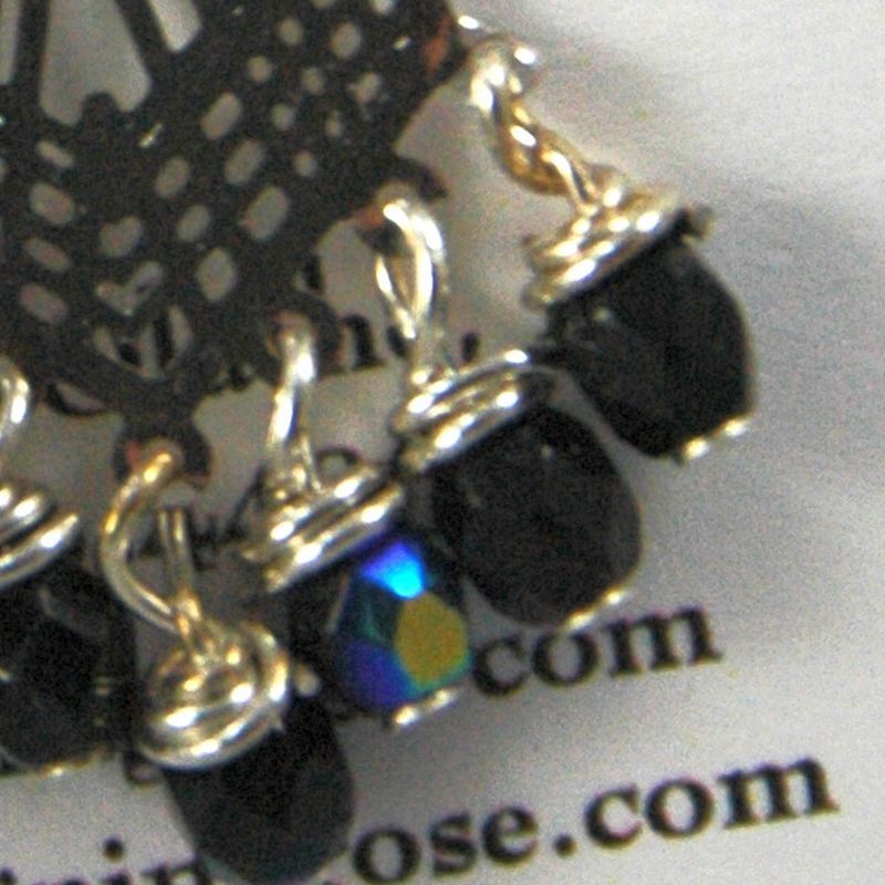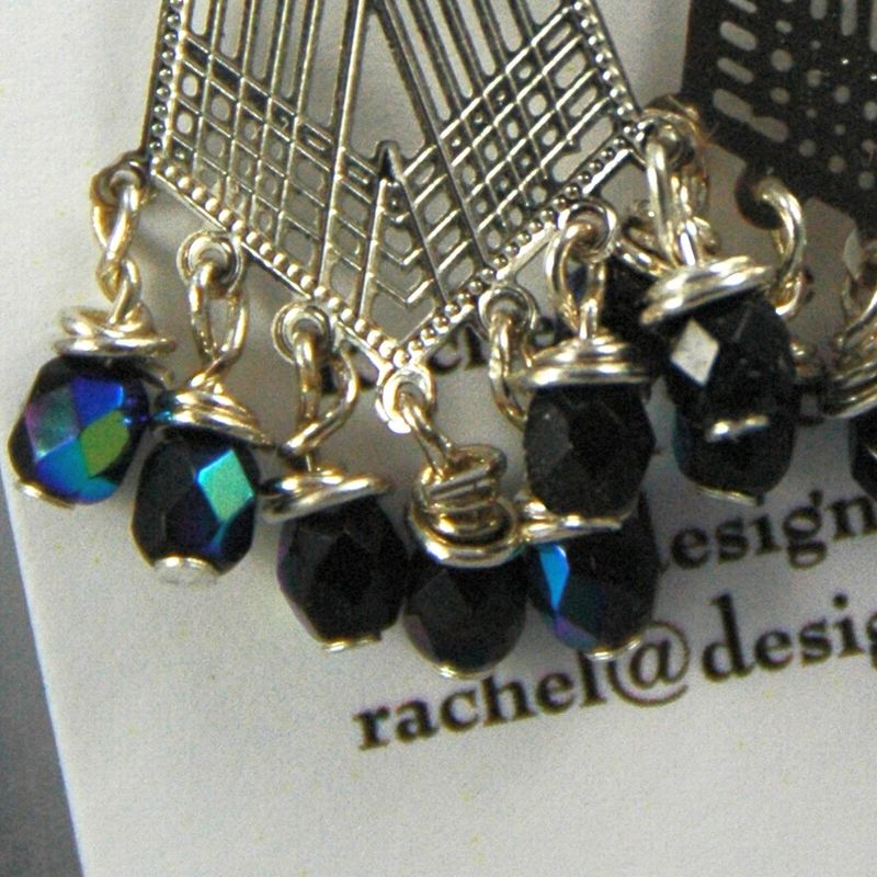 These lovely earrings are made with silver plated lazer lace and fire polished crystals. They hang down about 1 1\2 inches. You can choose the ear findings.I've got earstuds,fishhooks,leverback,and ear clips. They come with a free gift.