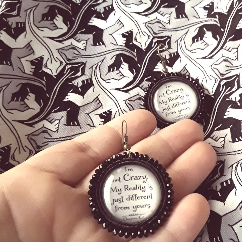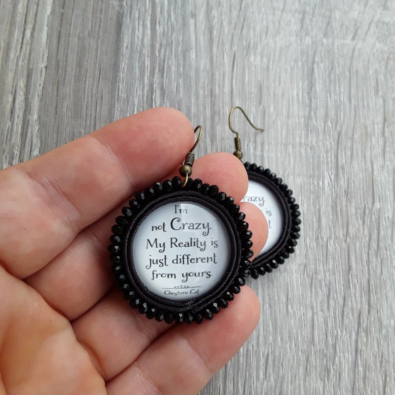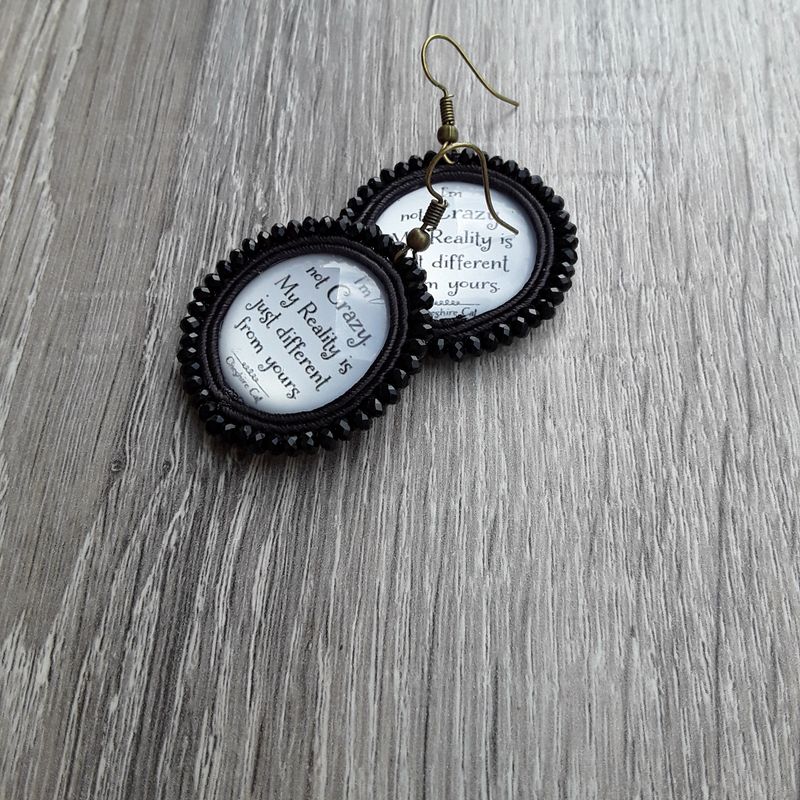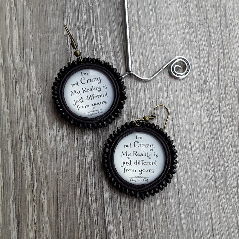 First of all my jewelry must be thought and then drawn, then the choice, with maximum care of the material and finally realized. In fact, even if they seem delicate, thanks to the excellent materials I use are resistant enough that allows you to have a unique jewel forever. Metal parts in contact with water can change color slightly. I highly recommend avoiding contact with perfumes, oils, sunscreen, and not wetting. They must be kept in its packaging to avoid various scratches or stains in contact with other elements. materials: - themed glass cabochon - crystal glass beads - soutache cord - back covered in black leather - dimensions 1.5 x 0.9 in approx. (length of the hook included) - open earring without nickel - can be customized *** for more info dm or e-mail crinnaxd@yahoo.it ****to be added the cost of shipping with registered international mail (14 euro)