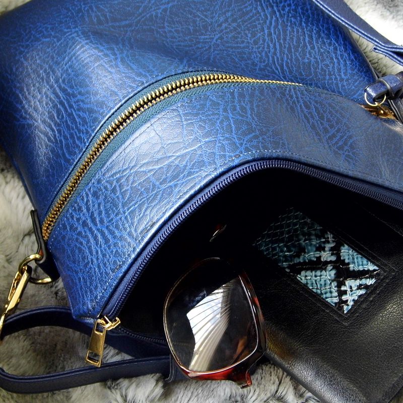 The ‘Elle’ cross body bag has been designed and crafted for you; a woman who is constantly on the go and needing a bag that is: functional, bold, and makes a fashion statement! This royal blue bag is just what you have been searching for. The beautiful summer color, which will be just as lovely for the fall and winter months. Designed from vegan/faux leather the double pull exterior zipper with its over-sized tassel is convienet for your: wallet, keys, tissues, hand lotion, and many more smaller items. The interior has three pockets, one with a zipper and there is also a much smaller compartment for your to slip a pen inside. Everything is kept safe and secure with a zipper closure. This one-of-a-kind cross body bag is great for both work and play! The adjustable shoulder strap allows you to go hands-free! The perfect gift for: Birthdays, Anniversaries, Graduations, Thank you, and so much more! Approximate Size: (H) 12 inches (30 ½ cm) x (W) 11 inches (28 cm)