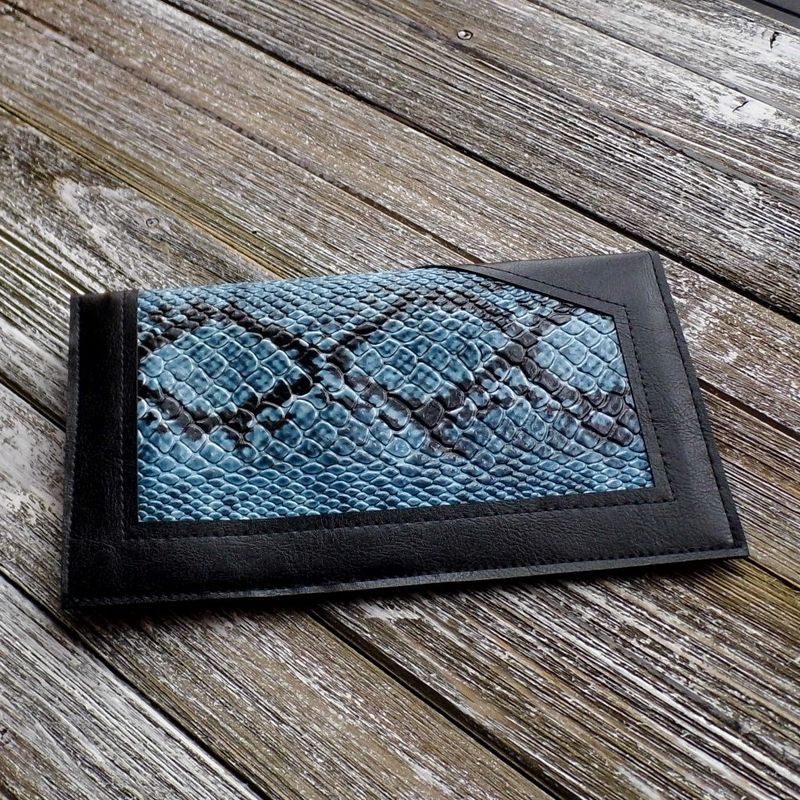 This bi fold travel wallet is made from a combination of black faux vegan leather and blue faux crocodile leather. Handmade with great attention to detail and care. Approximate Size: (H) 8 ½” x (W) 4 ¾" Free Domestic Shipping! Free Gift Wrapping!! & Worldwide shipping!!! Available from my Etsy shop:www.etsy.com/shop/Gennhaio Follow me on: instagram.com/gennhaio facebook.com/Gennhaio pinterest.com/gennhaio