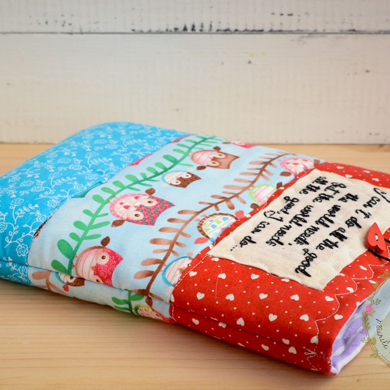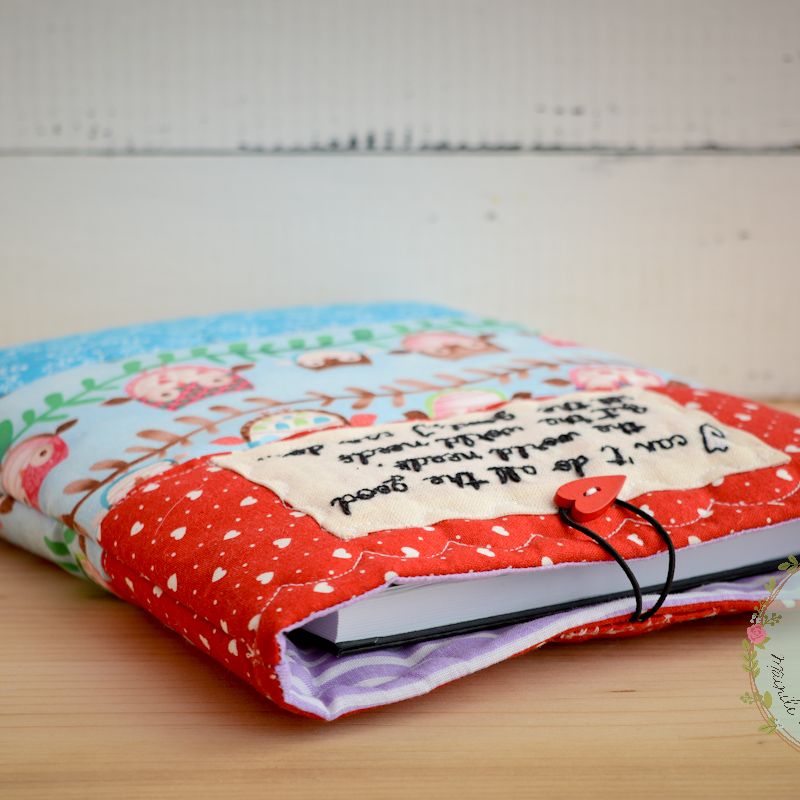 Book buddy, book sleeve, gift for reading, bookworm, quilted cover , personalized, fabric sleeve, owls, red hearts, teal, book sleeve, quote ***Made to order*** Easy to use for regular books, notebooks, quilted, 100% great quality cotton, hand embroidered with text/name. Measurements: 20/25 cm, rubber band and button closure. ****Our products have been handmade in a smoke and pet free home!!**** With all my love, Delia