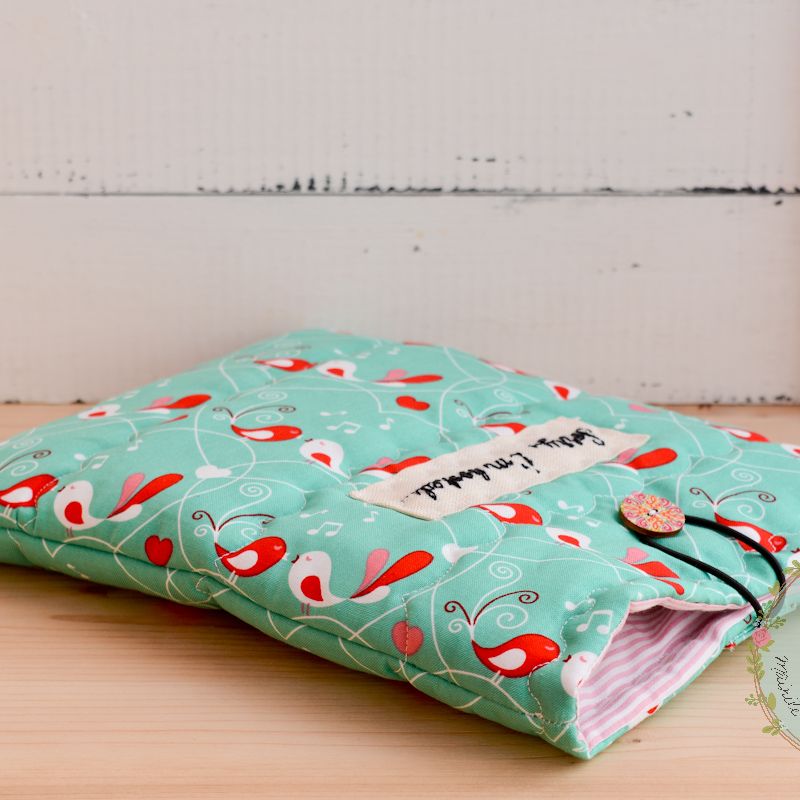 Book sleeve, e-book cover, gift for reading, bookworm gift, book buddy, vintage cover, notebook cover, hearts book cover, teal birds covers ***1 unique piece available*** This book sleeve is a great way to protect your loved and cherished books. It is light weight and perfect for throwing in a backpack or taking on the go, without the fear of damaging your book, tablet or e-reader. It is lined on the inside as well as padded to offer protection. Easy to use for regular books, notebooks, quilted, 100% great quality cotton, hand embroidered with text/name. Measurements: 8"/10", rubber band and button closure. For custom measurements, don't hesitate to contact me! ****Our products have been handmade in a smoke and pet free home!!**** With all my love, Delia