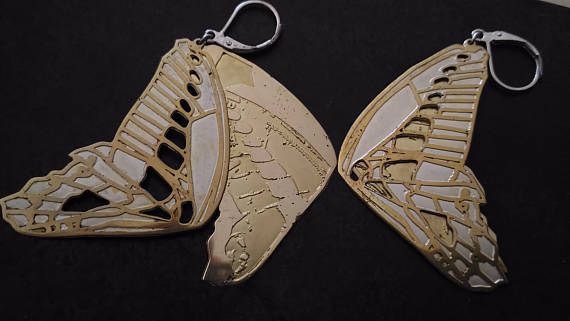 Brass two-layered metal butterfly wings with silverplated,engraved and perforated parts,one of a kind design based on a real butterfly photo