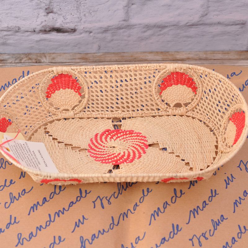 Handmade straw raffia fruits holder, bread and biscuits holder, make-up and nail polish holder. Well, you can use like you want! It's an interweaving product typical of Ischia, the island where I live. Don't stand up and immerse in water it may rust. Do not step on because it loose shape. Keep away from fire, such as direct flames because it could burn, or direct sunlight because it may fade. Don't put in more than 2kg of weight, it can deforme.