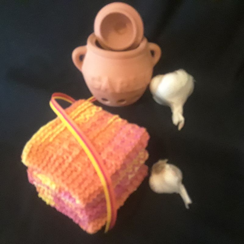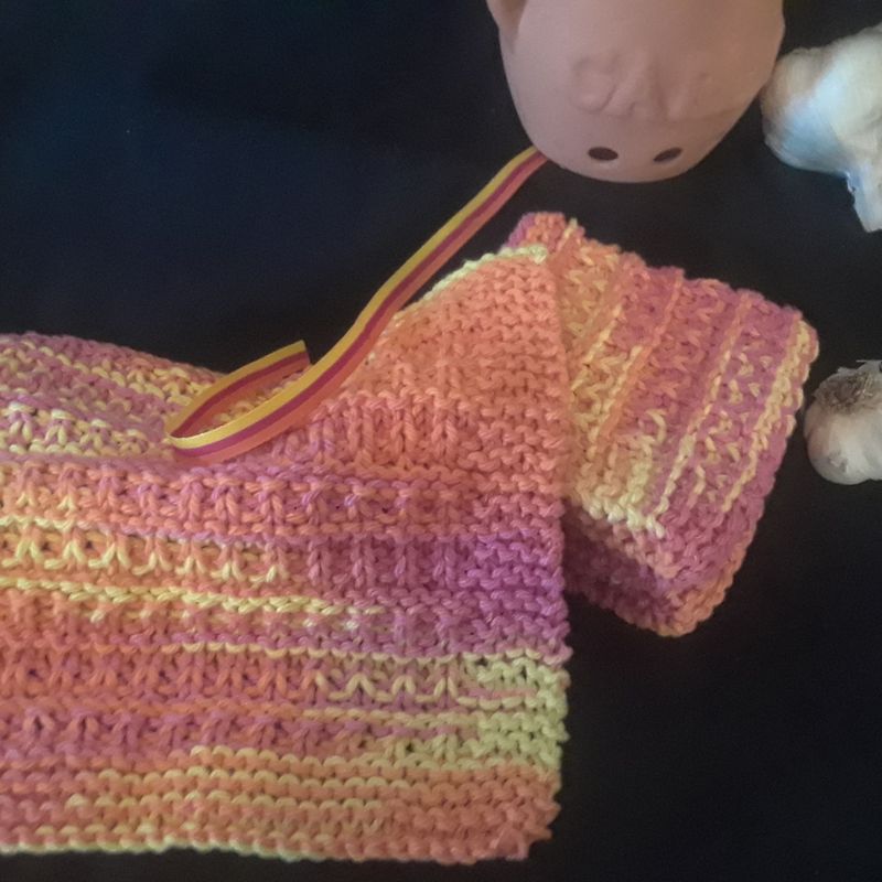 Hand Knit dishcloths/facecloths. 100% cotton. These are wonderful housewarming gifts or a nice change for your own decor. Ribbon wrapped in a set of three. *Ribbon may vary from photo.
