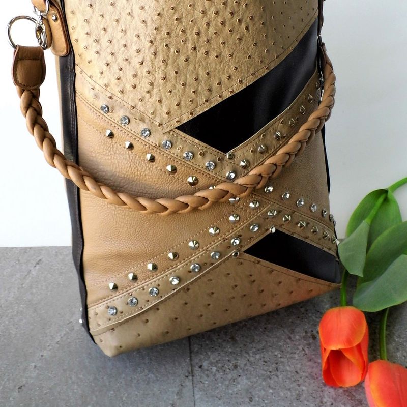 SOLD-Brown hobo bag, Brown bucket bag, Hobo handbags, Hobo bag with pockets, Vegan shoulder bag, Studded bag, Studded handbag, Bag with diamonds