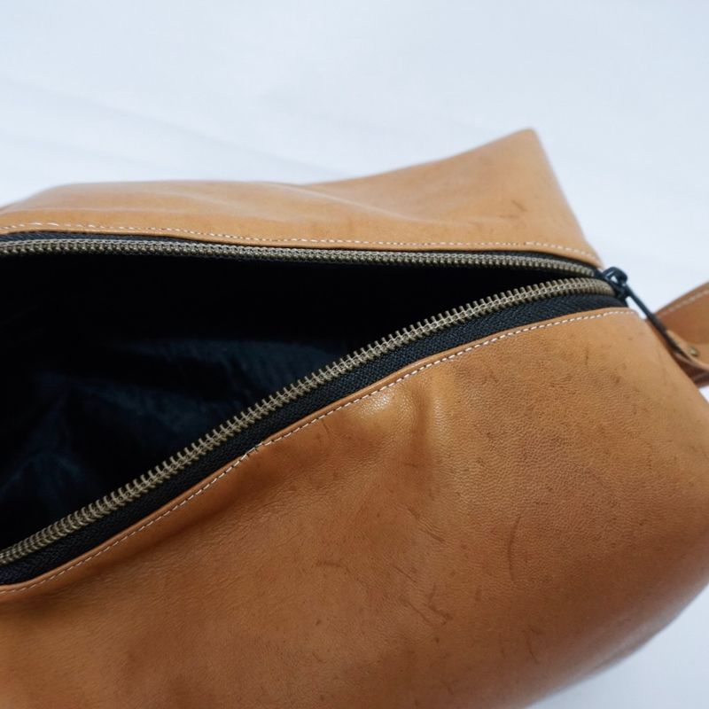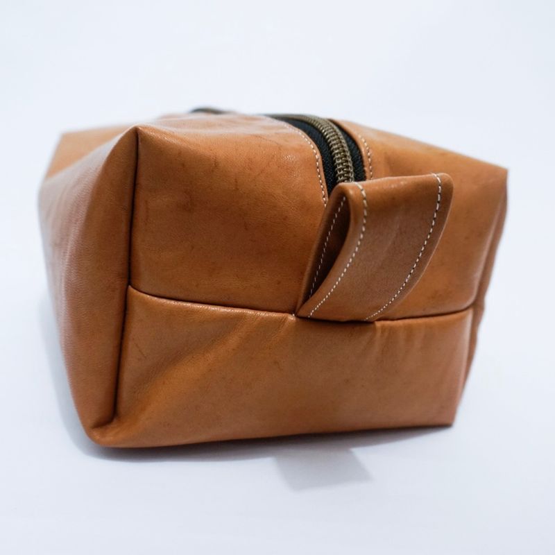 Travel in style with this fantastic, stylish, cognac Nappa leather, wash bag with a contrast stitching detail. It’s large enough for everything from shaving foam, razors and deodorant. On the inside, it’s lined with waterproof nylon, that can be wiped down in the event of spills, also, It has a discreet pocket for your little bits. There is a convenient strap to carry it by and a tab that helps when closing the zip. I recommend that you spray it with leather protector before use. Dimensions: Approx, 22cmx14cmx10cm And ready to be shipped. Personalisation is also available, with your initials on the carry strap. Please see the pictures. If you choose personalisation, add your initials in the note section whilst paying. PLEASE DO NOT FORGET TO DO THIS OTHERWISE IT WILL DELAY THE PROCESSING OF YOUR ORDER. If you would like this wash bag made in a different colour, I would be very happy to make one for you.