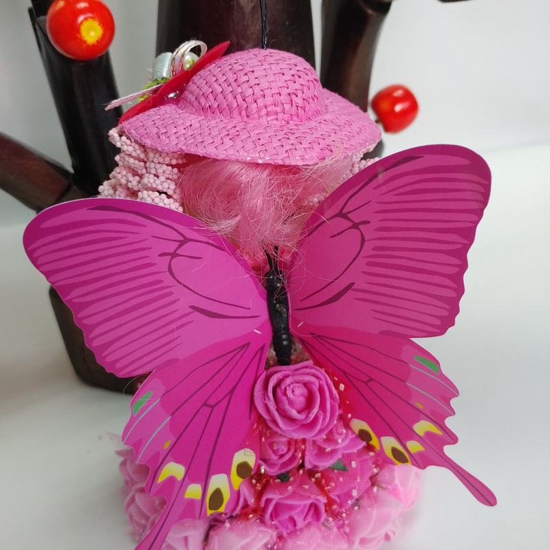 Angel butterfly doll is a bell is a Christmas Ornament is a Lady Doll in Pink. What a great gift for your Christmas decor and for your Christmas Tree. Based on my original design : Clay Pot Dolls, I created this Butterfly Lady pink, a Christmas Tree Ornament. This unique doll is a bell....so hang it on a tree and shake the branches gently to listen to sound of the bell. SIZE: --------- Butterfly Lady Pink Christmas Ornament is: 5" tall and 4.5" wide including wings . ( 12.5 cm x 12 cm)