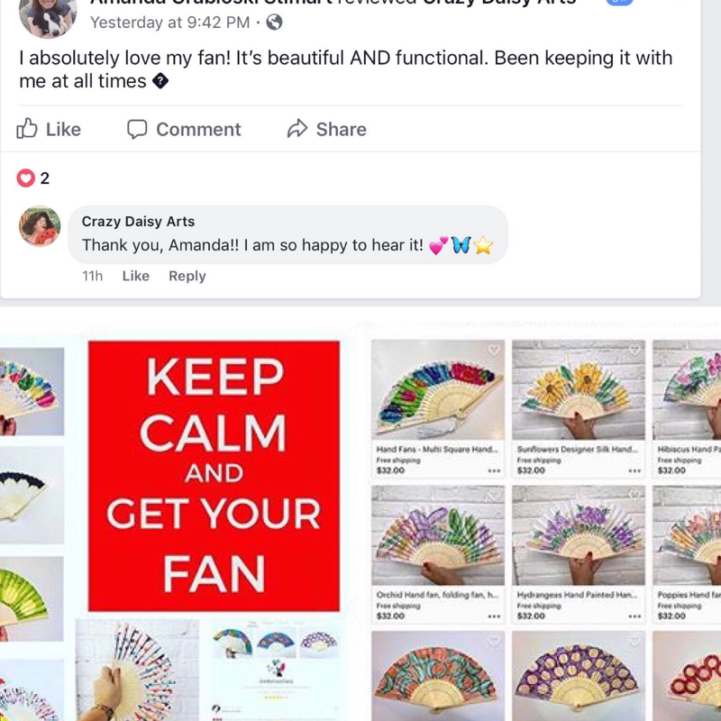 B&W “Waves” Hand Painted Hand Fan, Handfan, Folding Fan Gift for Her, Gift for Mom, Outdoor Wedding, Beach Wedding, Pool Side, Girlfriend Gift Don’t you just love hand fans? Me too! I think hand fans are a great and timeless fashion accessory! It is elegant and feminine... and, at the same time, with the beautiful designs I have created, modern and funky! Choose one (or two, or three 😁) of the many styles I have created and painted myself by hand. You can enjoy your hand fan in outdoor events, restaurants, concerts... they are also a great accessory for an outdoor wedding, beach wedding or just to hang out at the poolside or while at the beach! And don’t forget to take one to a club or dancing party! Keep cool in style! 💕🎉🎊 Hand fans are also a great gift to a girlfriend, sister, mom... they will love them as much as you and I do! 🎁😁😁 Each handfan comes with a matching handmade, handpainted case, designed and painted by me, so you can take them in your purse anywhere and everywhere!!! All my hand fans are Hand-painted in Watercolor by me. The painting in the fan, as well as in the case, has been sealed so the it does not wear out with use. Unique Design - Silk fabric, handpainted in watercolor. Bamboo ribs - width (when open) approximately 14.6", length approximately 8.3". ⭐️ More styles available, see additional pictures and my shop listings⭐️ Thank you! Free (and fast!) shipping in the USA