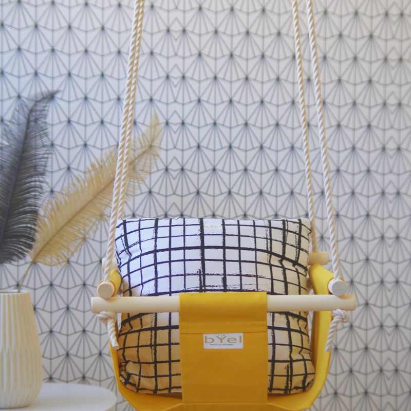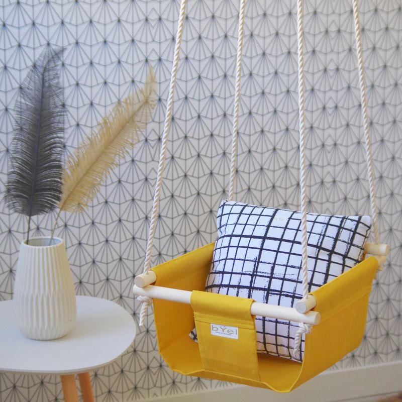 Byel Basic indoor baby swing. Mustard yellow boho nursery decor, swing chair