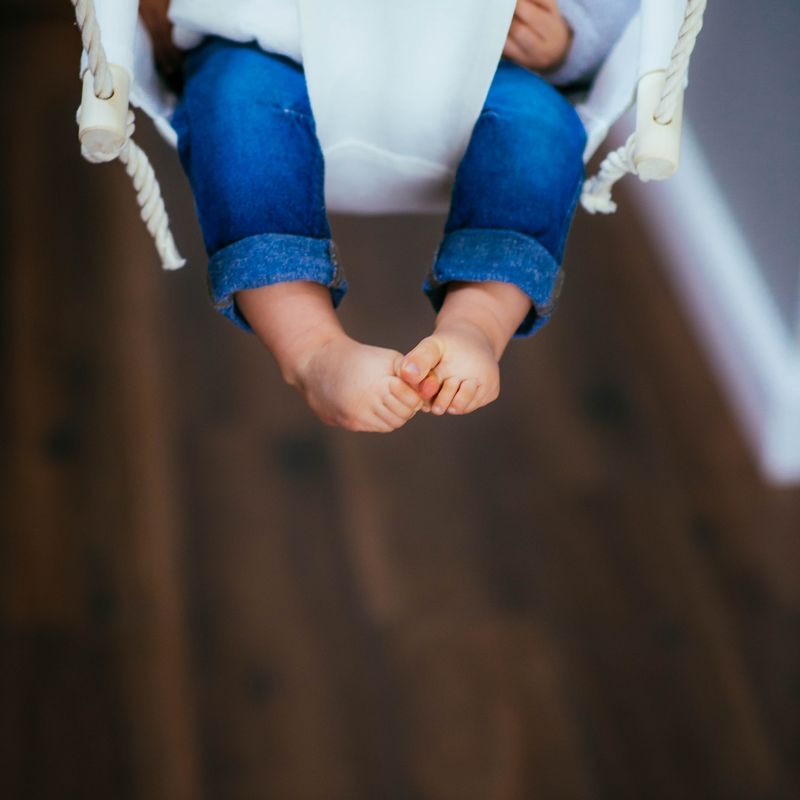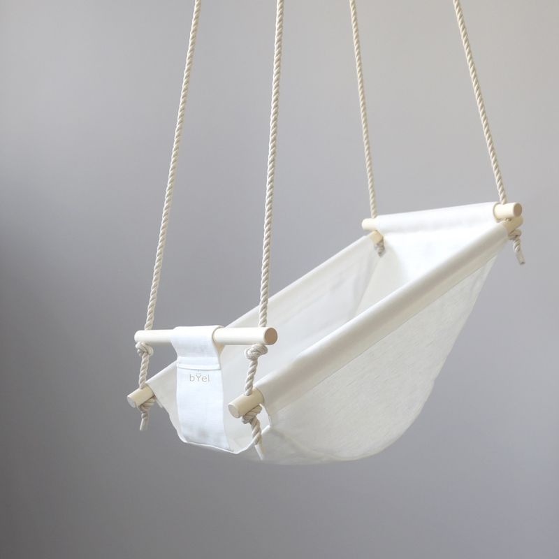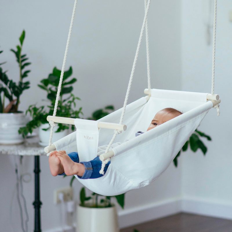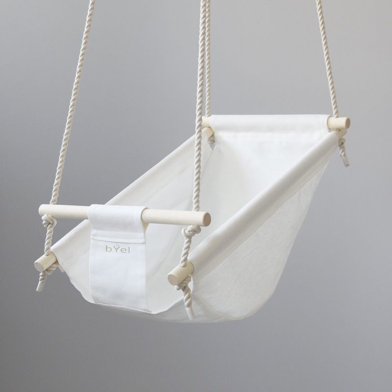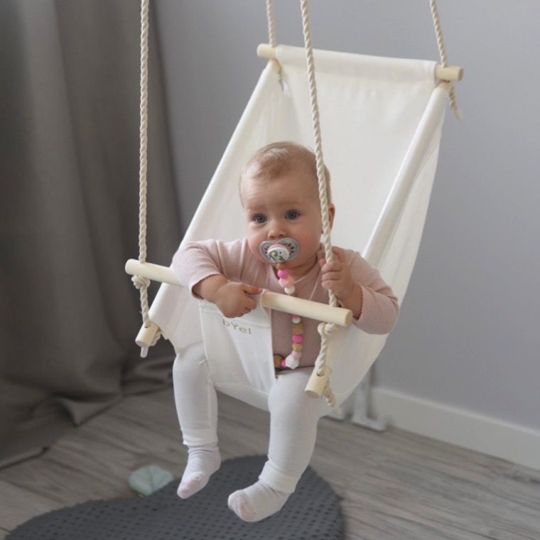 Byel Basic natural indoor baby swing chair. Linen nursery decore, baby indoor fun