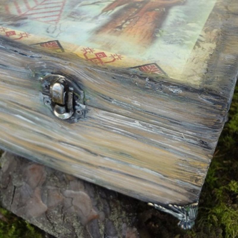 It looks like it was passed on from generation to generation... And now it's yours, keep your secrets there... The size of the casket "The call of the past" is 17.5x14x9 cm. Fabrics: pine imitating very old wood, decoupage, toning. It can be used for storage of your favorite things. It will perfectly fit in the interior of "rustic" style. It can be a great gift for both men and women. Care instructions: moderate wet treatment.