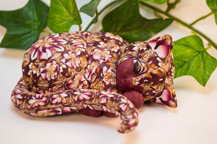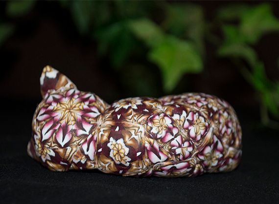The Sleeping Kitten is delicately handcrafted figurine, a clay sculpture that is unique and a collectible work of art. This sculpture is created by using geometric designs with different colors of polymer clay. The actual form of the Kitten is carefully molded using wire, tin foil and leftover clay. This figurine stands stands 1.5" tall and 3.5" long would love to take a nap in your home.