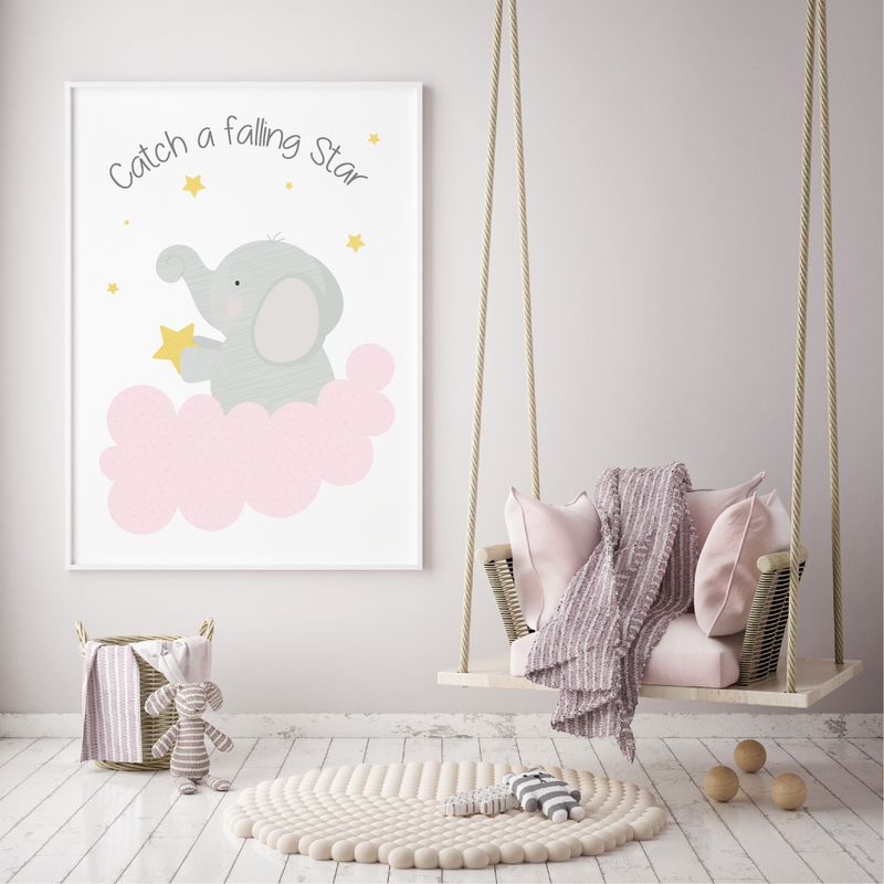 Catch a falling star,elephant , Playroom print, nursery print, wall art, girl, playroom poster, instant digital download,children wall art
