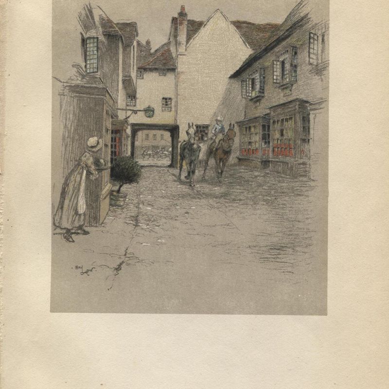 This is an original Cecil Aldin antique lithograph signed print from the 1921 book 'Old Inns'. Print is about 5 x 6. Actual page is 9 3/4 x 7 1/2 Will fit a 8x10 frame.