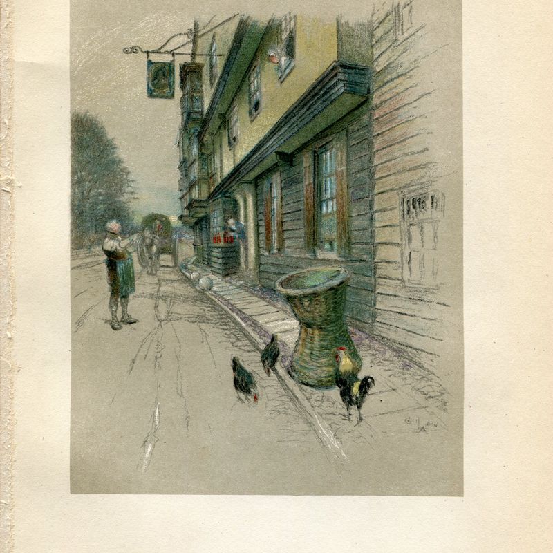 This is an original Cecil Aldin antique lithograph signed print from the 1921 book 'Old Inns'. Print is about 5 x 6. Actual page is 9 3/4 x 7 1/2 Will fit a 8x10 frame.