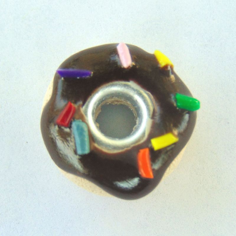 With an inner diameter of 5mm (3/8in), this handmade polymer clay bead will fit most popular charm bracelets. The entire bead is about 3/4 inches in diameter and is perfect for anyone who loves sweets! Comes wrapped in a cute drawstring jewelry bag perfect for giving or storage. https://www.etsy.com/shop/SolarCrush