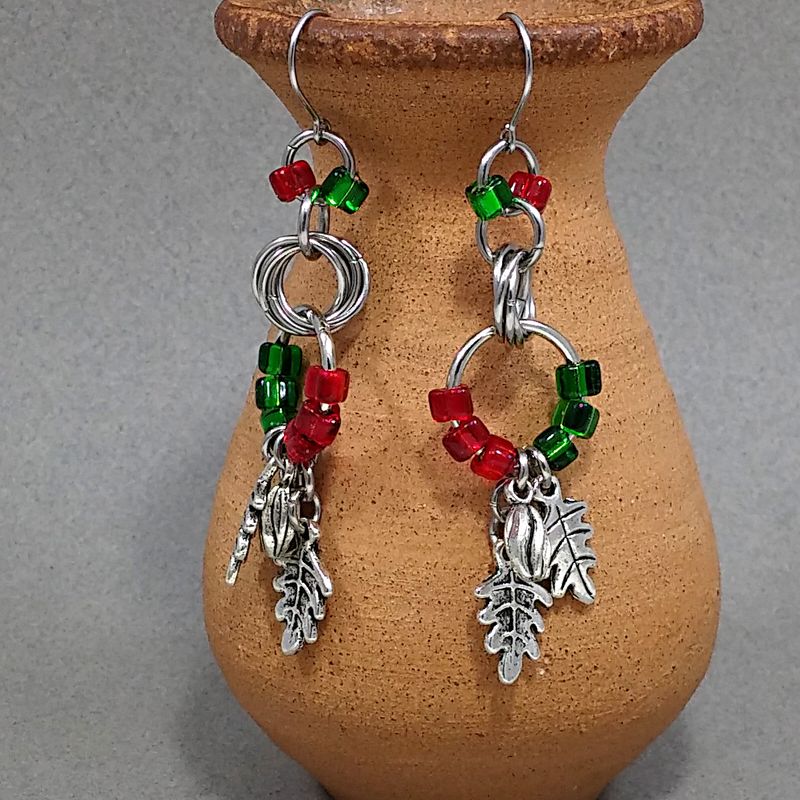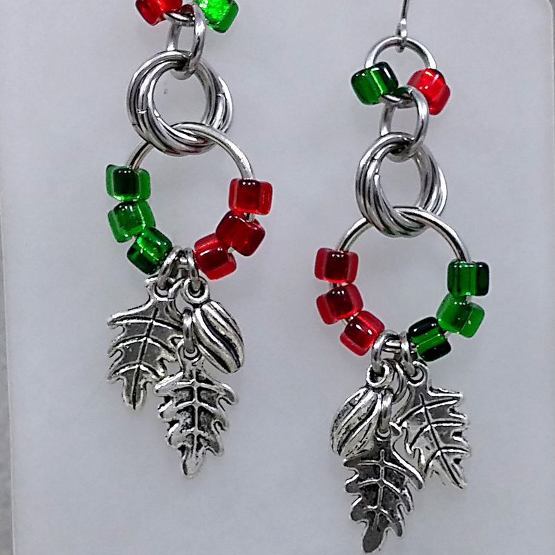Christmas Chainmail Earrings & Japanese Glass Beads