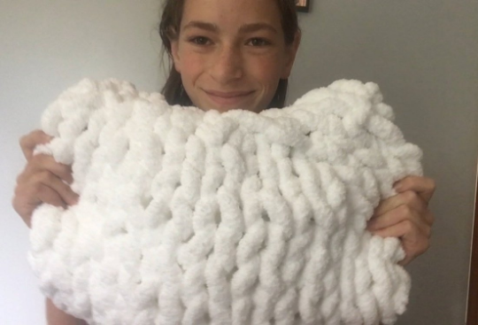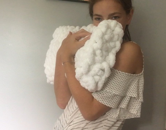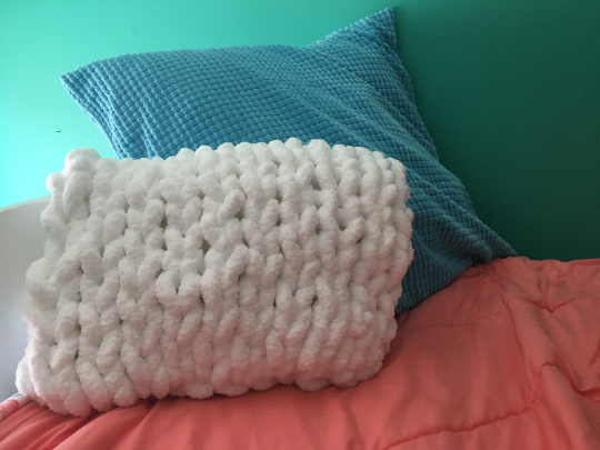 chunky knit pillow, white arm knit pillow
