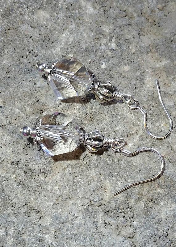 Clear Glass Earrings,Sterling Silver Earrings, Crystal Dangle Earrings, Vintage Style, Boho Earrings, Gifts for Her, Beach Jewelry