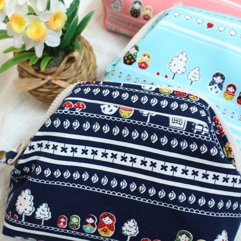 Handmade Coin Purse with Matryoshka Doll pattern available in 3 colors included pink, light blue and dark blue. It's suitable to used to store coins, small change, cards, cosmetic and other small items. Measurements (L*H*D): 14cm * 11.5cm * 5cm (base) , strap's length is 15cm Shipping included the tracking info which will be provided upon shipment Please feel free to contact me for more details.