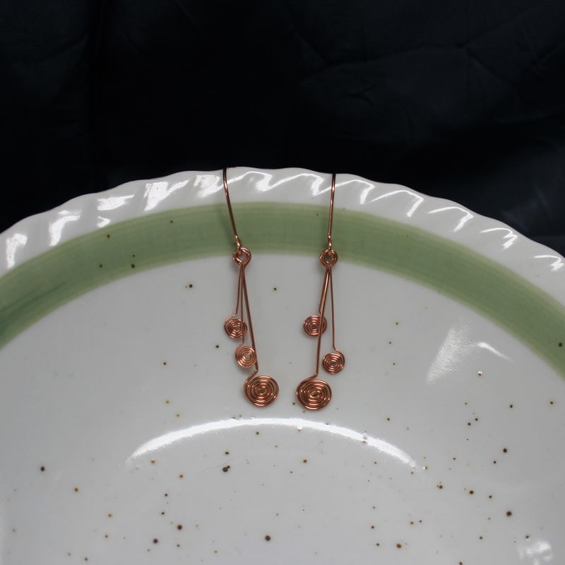Copper wire, spiral earrings, dangle, fishhook
