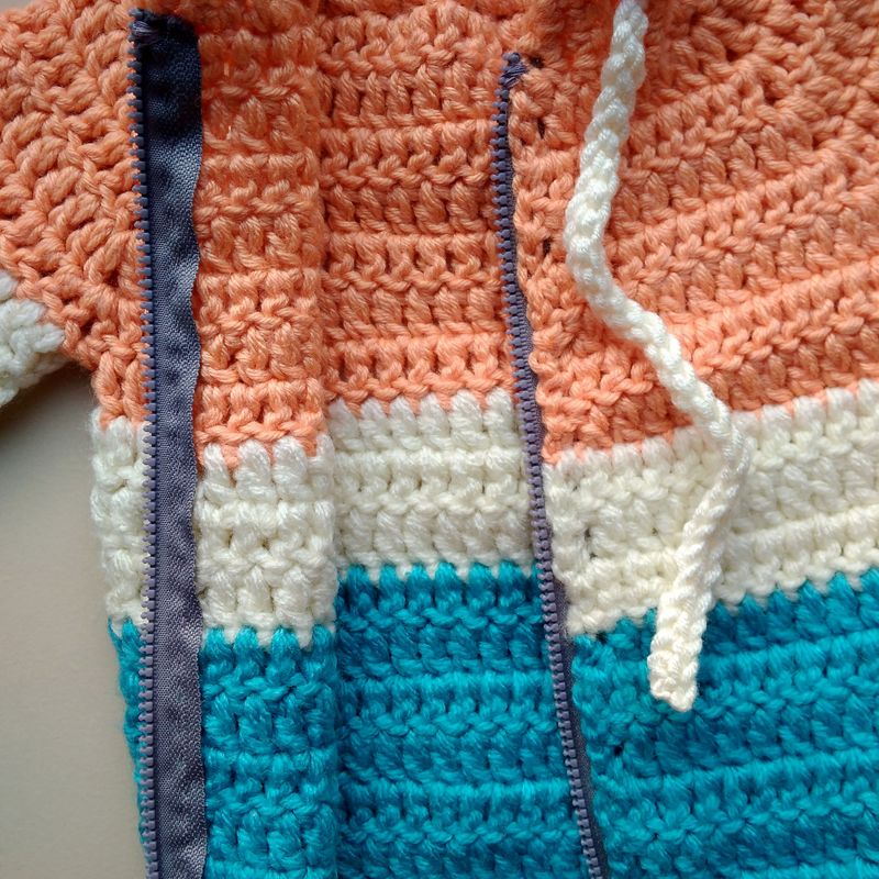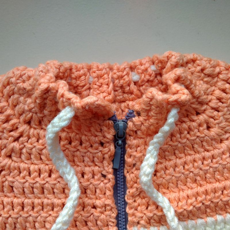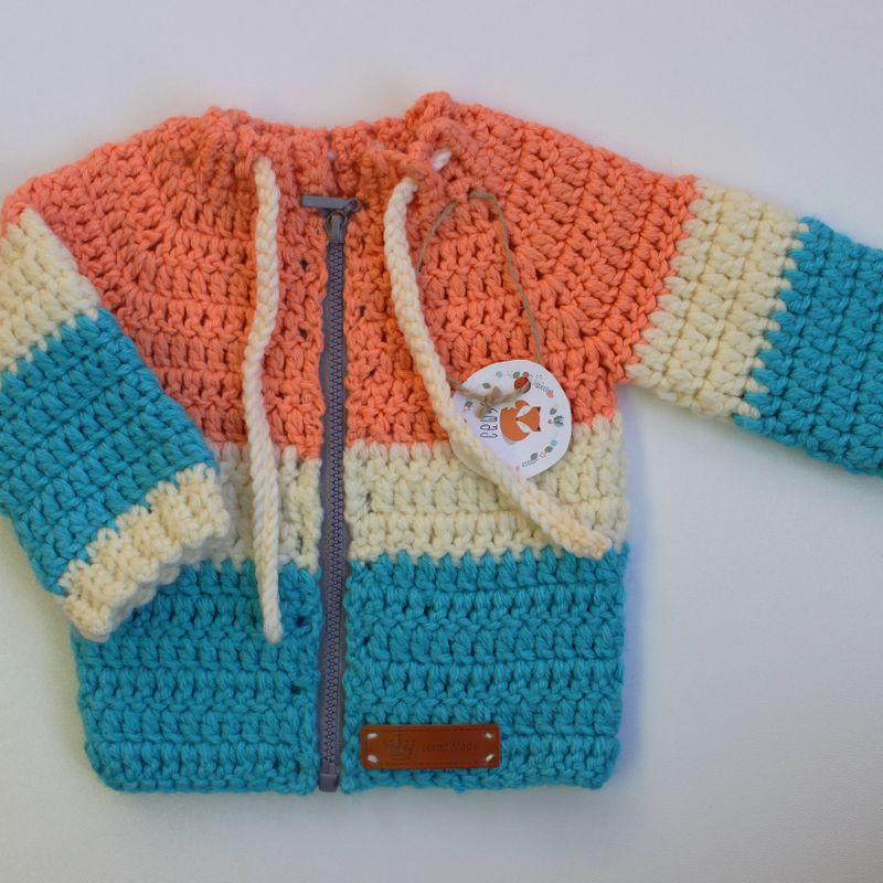 This set includes hand crochet baby jacket with zipper and hat. It will fit a boy or girl size 0-3 months old. This sweater is machine washable and dryable. It will keep your little one warm on those chilly days and will make a great gift any time of the year. Free shipping worldwide. Jacket Age: 0-3 months Material: 40% wool, 40% acrylic, 20% cotton Hat. Age: 0-3 months Material: 100% Acrylic