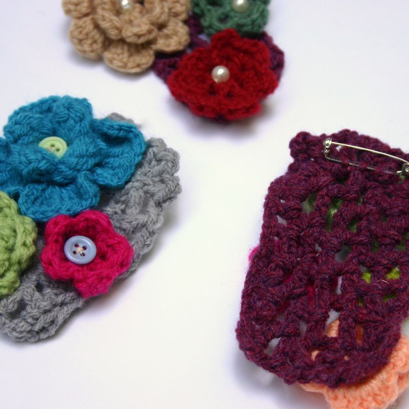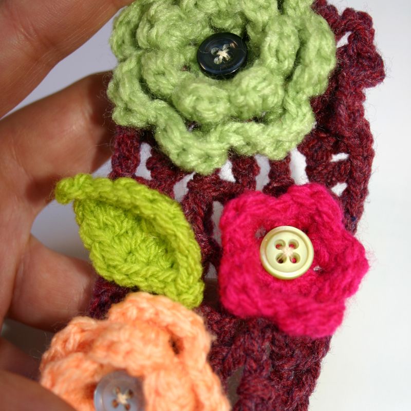 Crochet Brooch, a combination of flowers and leaf. A handmade jewelery for everyday wear able to pin on cloths, handbags, coats, bags, scarfs and everywhere! Suitable for boho style, a very good idea to show off a t-shirt or an any simple cloth. Length 11.5cm or 4.5in. Wide 6cm or 2.25in.