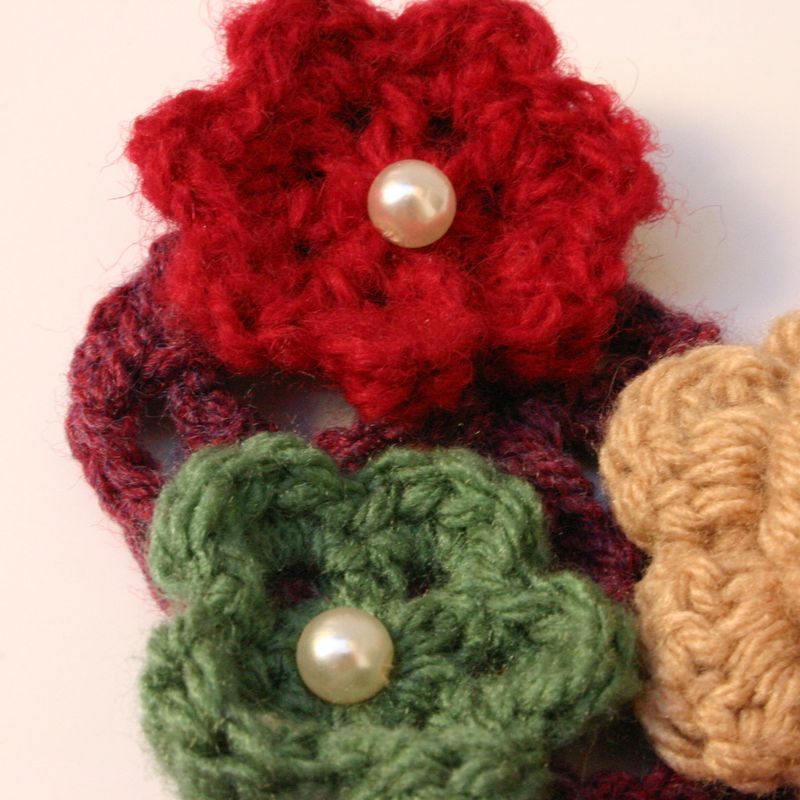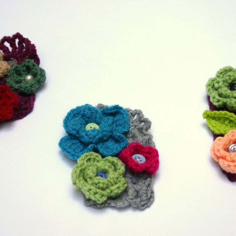 A Handmade Crochet Brooch with three flowers for a Vintage touch! An everyday Jewelery easy to wear in lots of occasions. You may pin it on a Coat, Bag, Blouse, Hut and wherever you like! Made to offer beauty and joy. The yarn is a mix of acrylic and wool and the pin stainless steel, so you can wash it without any problem. Length: 10cm or 4in Wight: 7.5cm or 3in