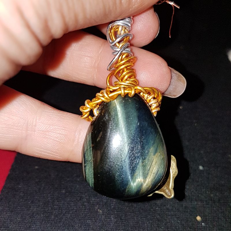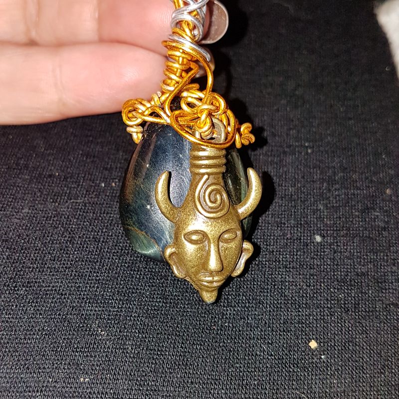 Handmade wire wrapped crystal obsidian crystal gemstone pendant