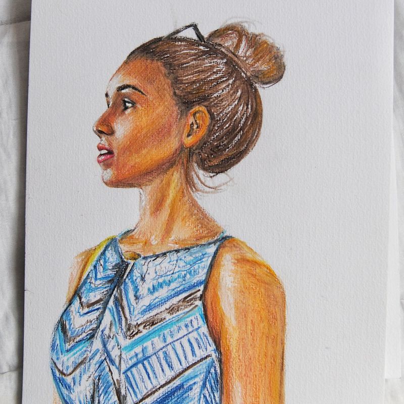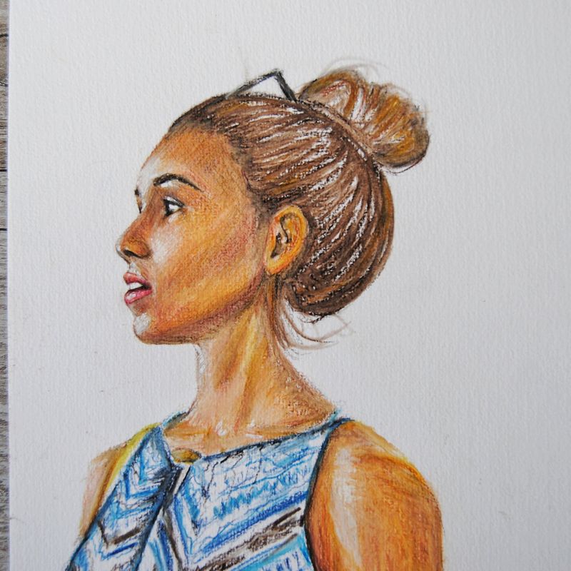 Hi there! This is a custom portrait of me. It's the first one I have made of myself just to put here something that showed my portraits. So, if you like my style, I can draw a portrait for you. You just have to send me a photo you want drawn so that I'll be able to sketch. This one is made with colored pencils on watercolor paper, which is a thick paper. It's on A4 size. I can change the type and size of paper if you want, you just have to send me a message with your request. I draw with graphite too. The prices may adjust to the paper size. If you have any doubts, feel free to ask!