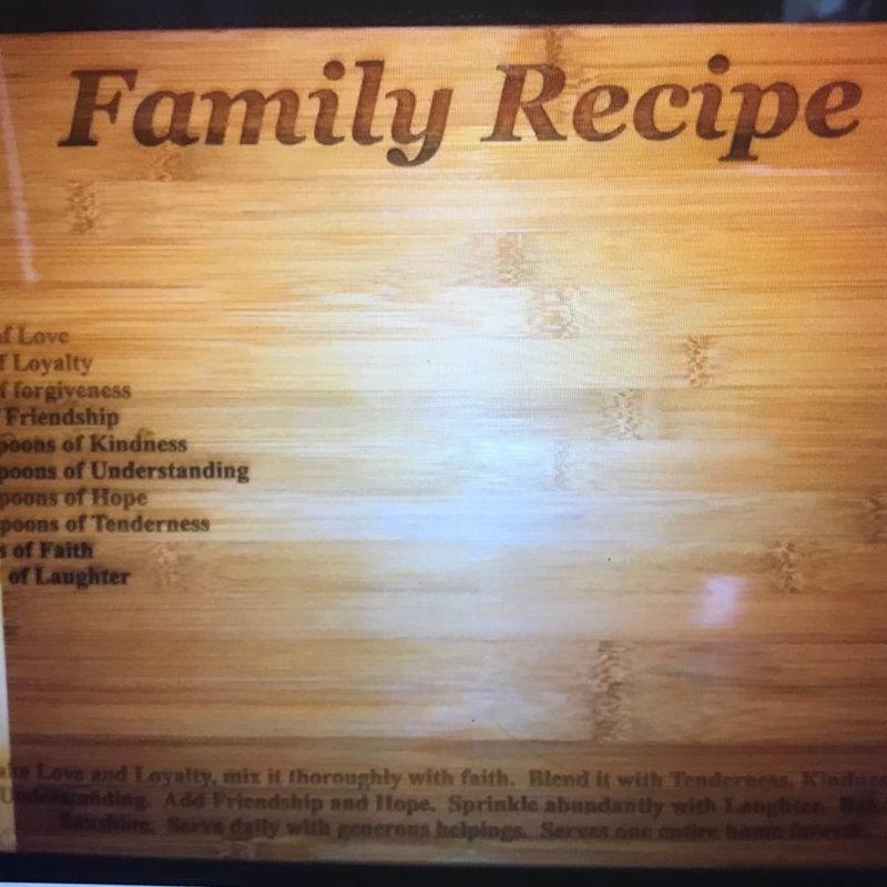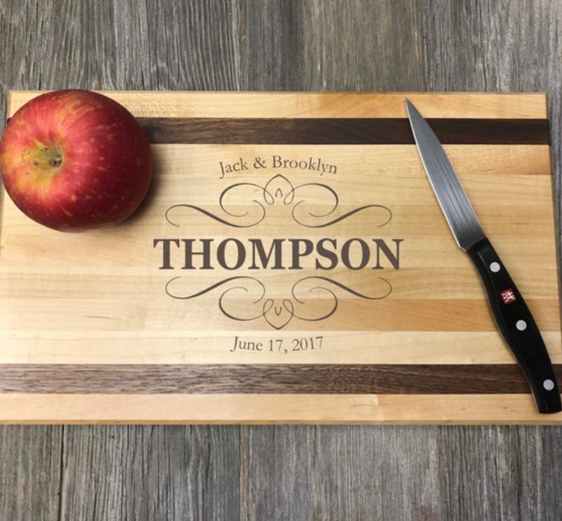 bamboo cutting boards can be engraved with a design that you like. favorite family recipe. family name. boards came in different designs to choose from. even do cheese cutting boards. can do in sets. prices start 25 and up.