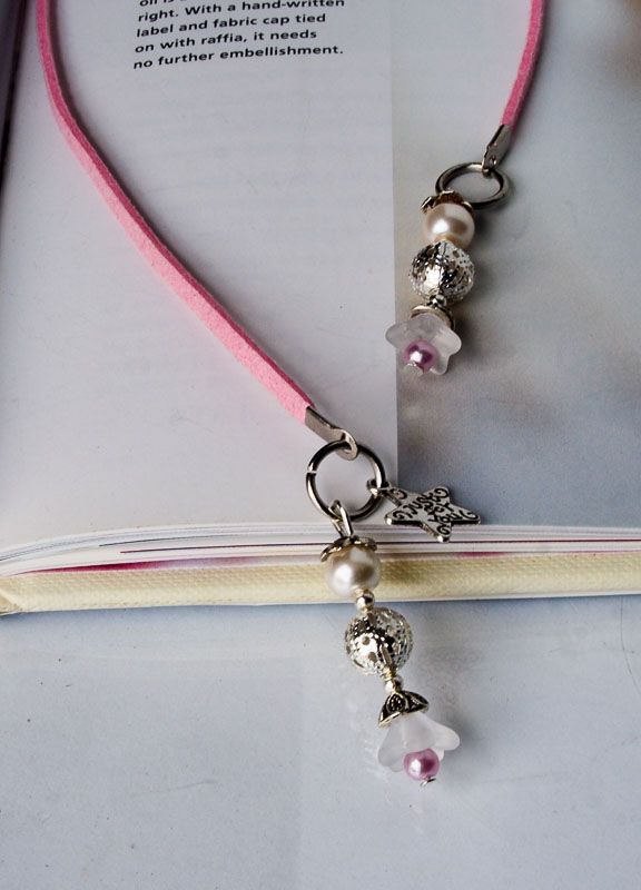 This beaded bookmark is a luxurious little book accessory. Unique Floral Beaded Bookmark, White leather Cord, With white frosted flower beads ideal for your mother, daughter, sister, friend, school kids, teens, teacher, friend or book reader! It's also a perfect gift for your friends, mother, sister, grandma, teacher or loved one, regardless of age. I'm sure anyone who likes to read a good book will love it :D It's shape and size fit most books perfectly. It is ideal for book size about 10 inch or less. The bead leather suede cord sits inside the crease of the book and keeps your place. The beaded ends extend outside the book at the top and bottom. You can use this bookmark for other purposes. You can tie it to a purse or handbag, or tie it to the door knobe... Hang it anywhere so you have something pretty to look at! Each bookmark comes already gift-wrapped in a special organza bag, ready for giving or keeping. https://www.etsy.com/listing/562981549/elegant-beaded-bookthong-pink-leather?ref=shop_home_active_9