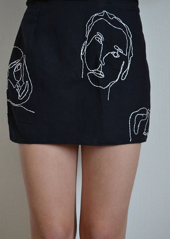 Unique skirt with embroidered oneline faces. Every skirt is unique.