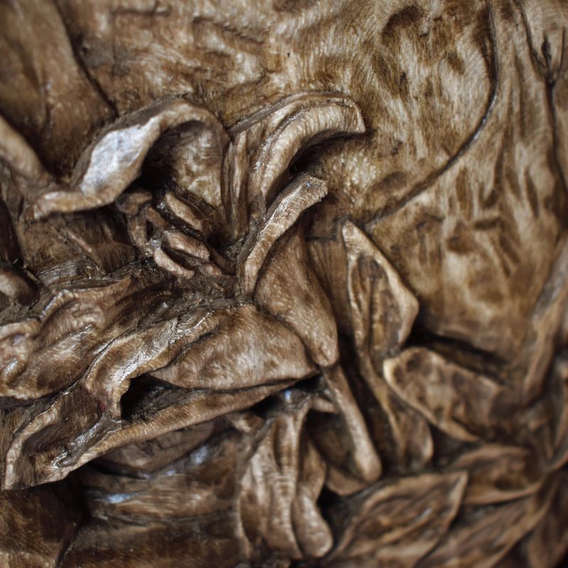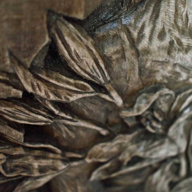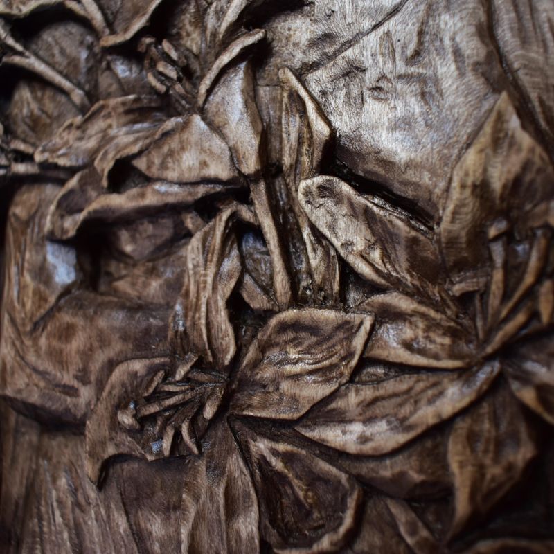 Evanescence wood relief, handmade carving, basswood sculpture, walnut brown