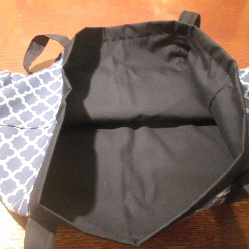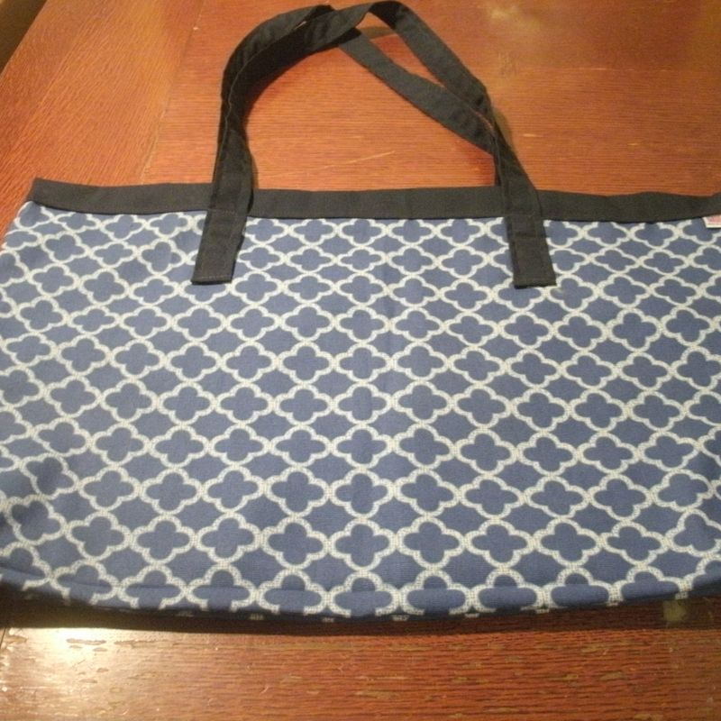 Heavy duty shopping tote. Made with Waverly home decor fabric. Fully lined with dark blue home decor fabric. Measures 22 inches wide, 14 inches high, and 6 inches deep (front to back). Shoulder strap measures 13 inches from top of bag. All doubled stitched. Can be used for shopping, work or play. Machine washable, tumble dry low heat or line dry.
