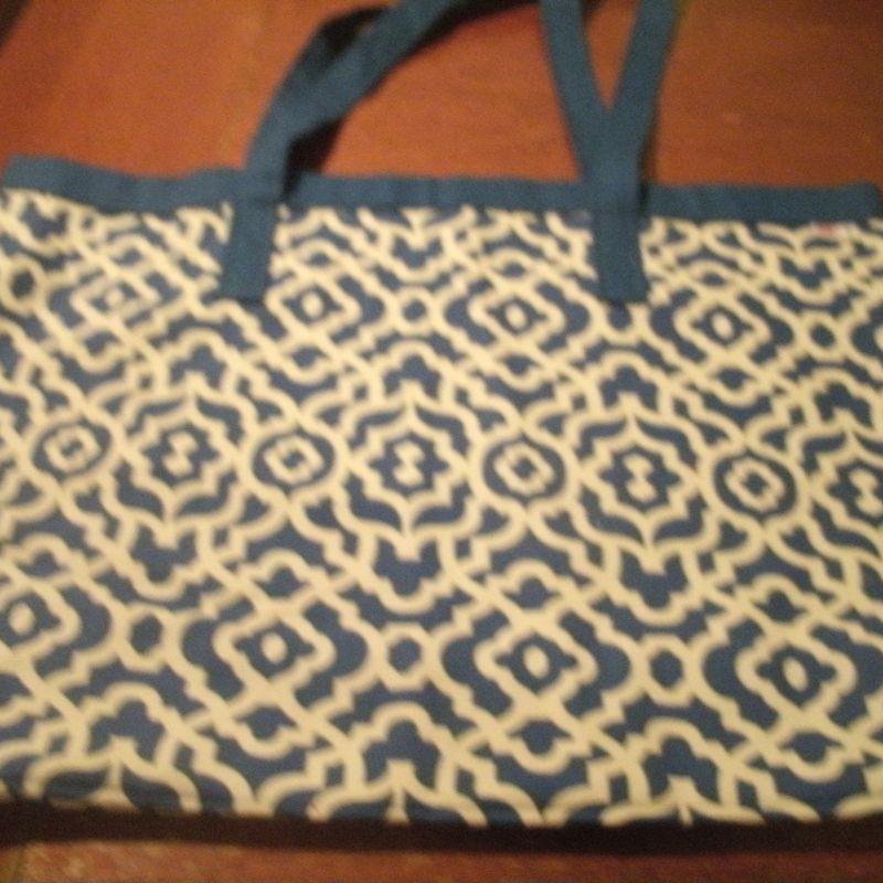 Shopping tote made with Waverly Home Décor Fabric. Fully lined with dark blue home décor fabric. Tote measures 21 inches wide, 15 inches high and 6 inches deep (front to back). Shoulder strap measures 15 inches from top of bag to the strap. Machine washable cold water, tumble dry low heat, or line dry. Can be used for shopping, work or play.