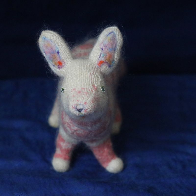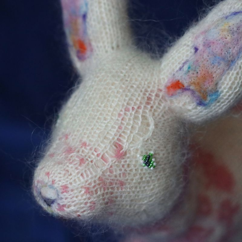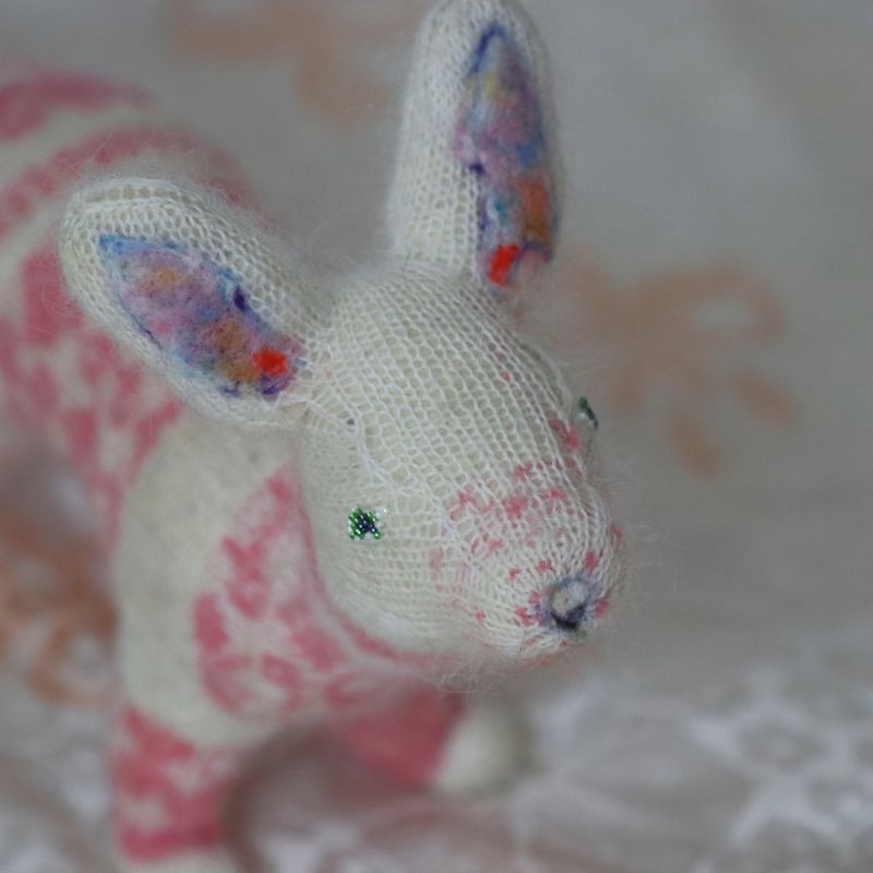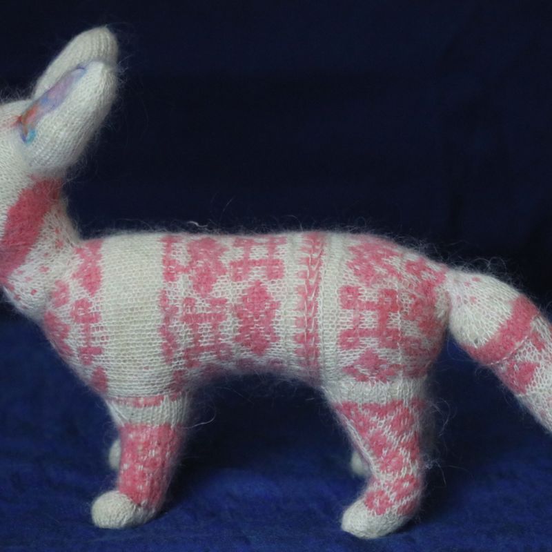 16"long, 9"tall. She walks in the morning mists in the spring time. How do you know she was there in your garden? Look at the trees now almost invisible behind the number of little florets:) The Fairy Floret Fox contains an orgonite knitted safely inside of her. Orgonites are known for their ability to reduce electromagnetic pollution and decrease effects of geopathogenic zones. She is made of almost all natural fibers mostly mohair. Stuffing is made of pure fleece. Face is needle felted with eyes sewed from Japanese Toho Beads. She can be washed in a washing machine on hand-wash cycle. After washing just stretch her into her original shape:) She is ready to be shipped in five days from your order:)