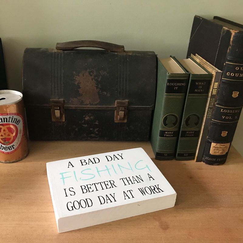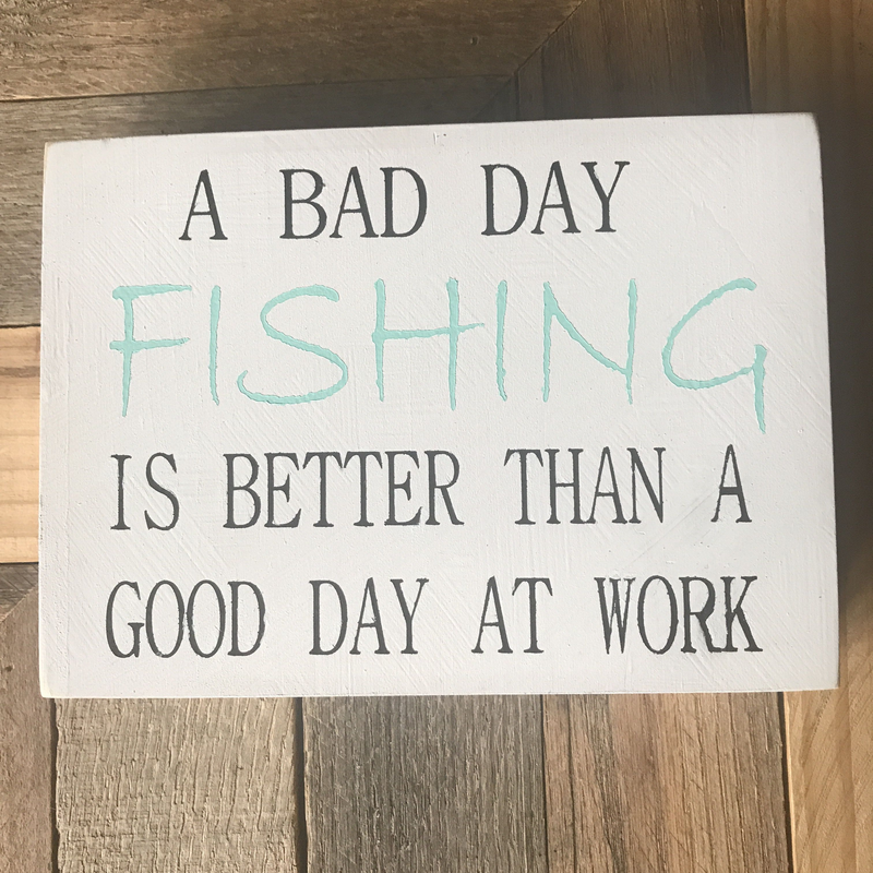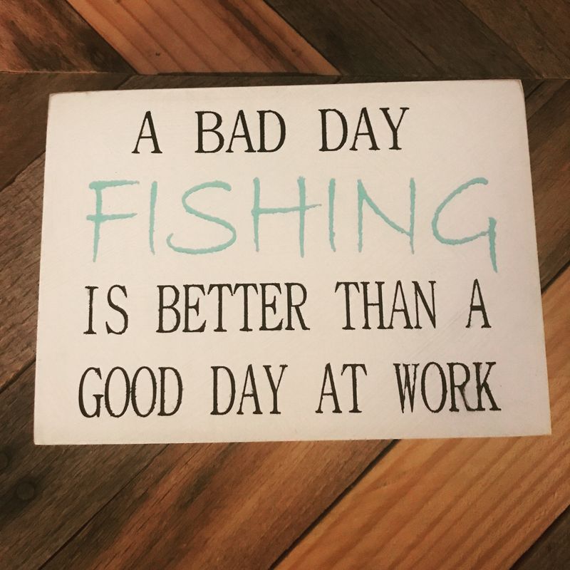 A bad day fishing is better than a good day at work Sign! The ideal fisherman gift for fathers day or a cute bit of fishing or shore decor. The perfect gift for all those fishing addicts out there, or as an add on to a trophy win or club competition hand outs. This sign has a painted white background with the words “ Bad day fishing is better than a good day at work” painted in black and aqua. Not quite what you are looking for? We love custom orders - just request a custom order and have something made just for you! Please feel free to contact us with any questions. Thank you for visiting The Country Cowshed! Be sure to follow us on Facebook for updates, specials and more photos: www.facebook.com/thecountrycowshed For more vintage and handcrafted items, you can check out our Etsy listings here: https://www.etsy.com/shop/TheCountryCowshed