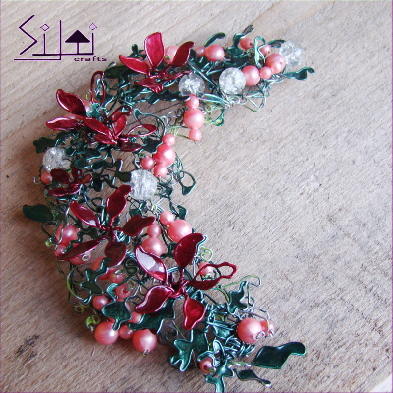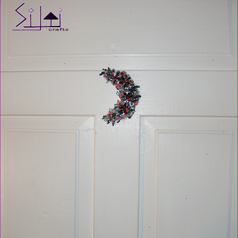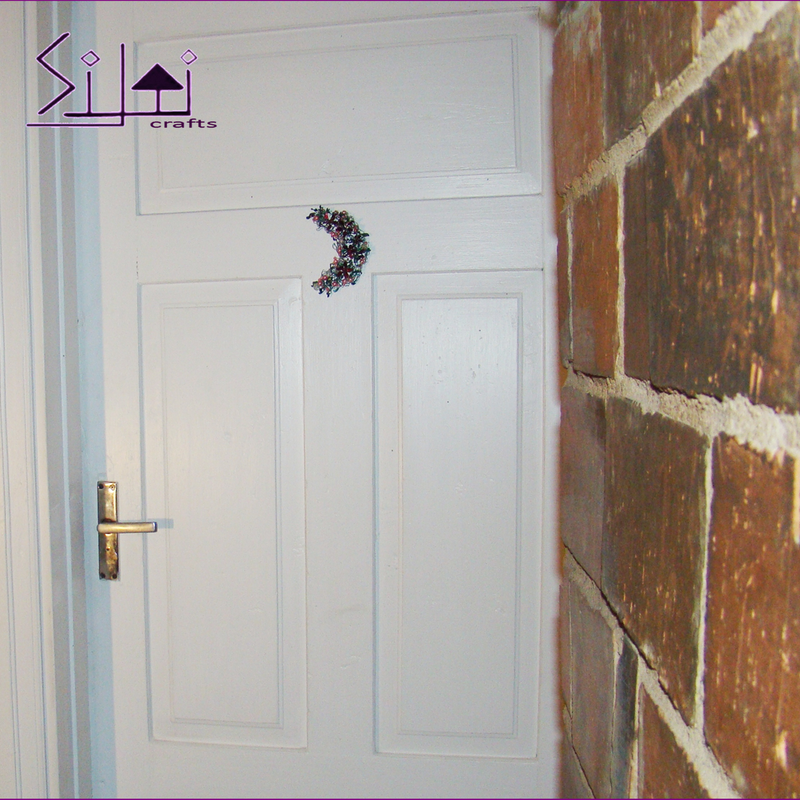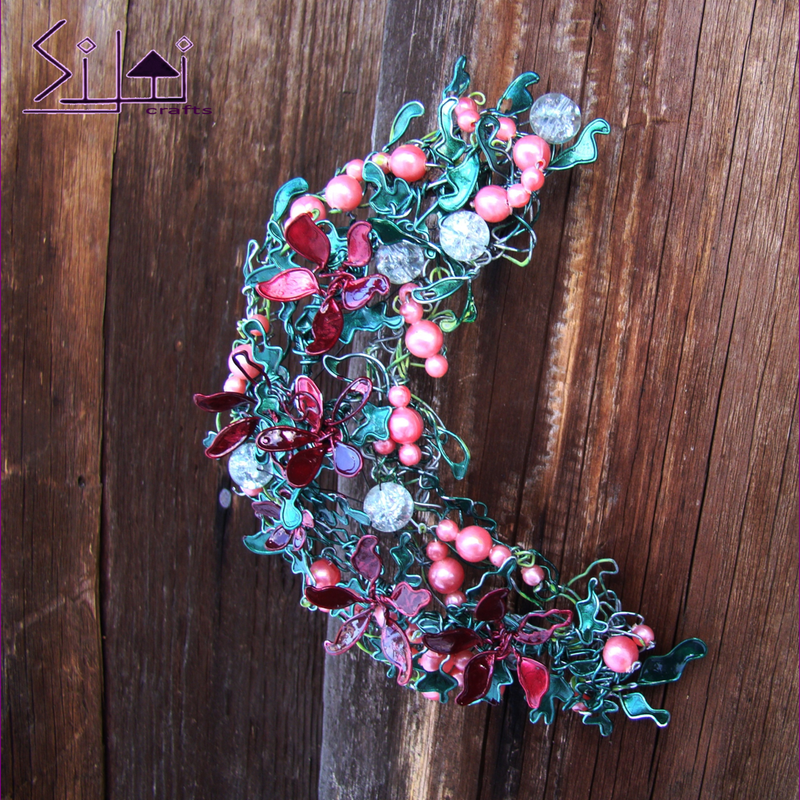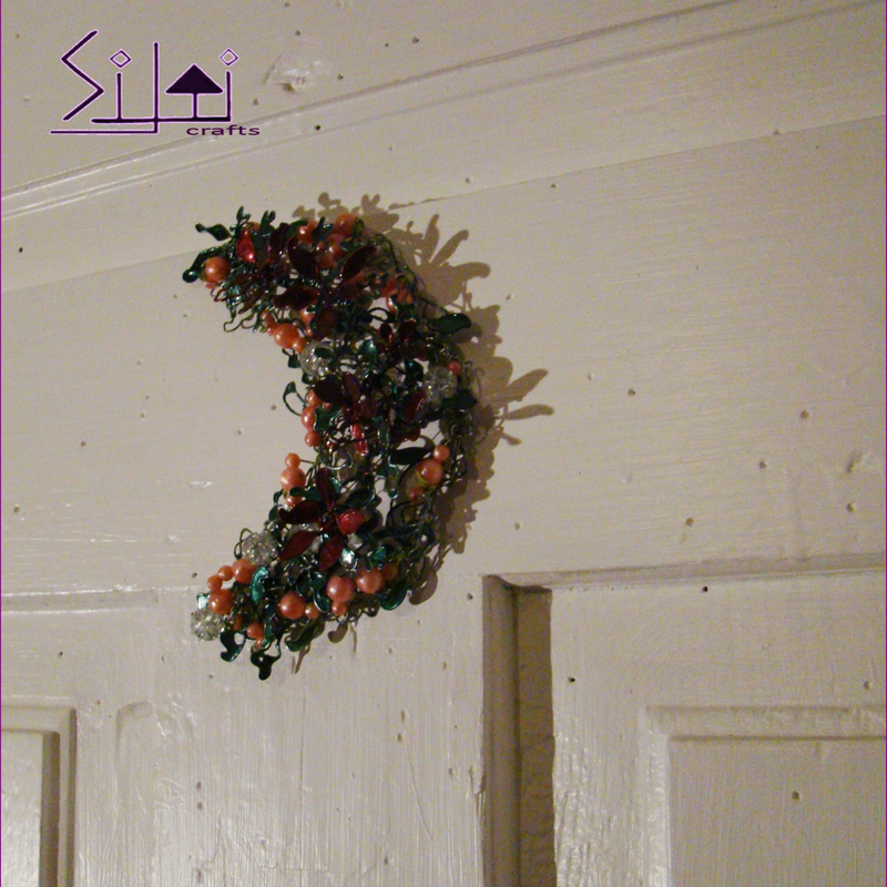 Flower Moon door hanger or wall decor with bohemian and vintage Victorian vibes. Mysterious, magical and inviting. Suitable for indoors and outdoors, a touch of magic in any place! Delicate, intricate and durable hanger to use year after year. Crafting Materials: This wall art piece was crafted from metal wire, combining it with plastic and glass beads (upcycled from used, broken jewelry). Metal wire is also coated with paint and varnish. Dimensions of the Moon: 15cm x 11cm x 2,5cm / 5.9" x 4.3" x 0.9" There is nothing that could damage this floral moon hanger if it's used indoors. It also won't mind winds and rains outdoors (just secure it safely to the door or wall). If placed in rainy outdoors for long time, over time it might get damaged by the rust. From the entrance door to the bathroom - you decide where you need the touch of moon magic and flower power! Ready to ship!