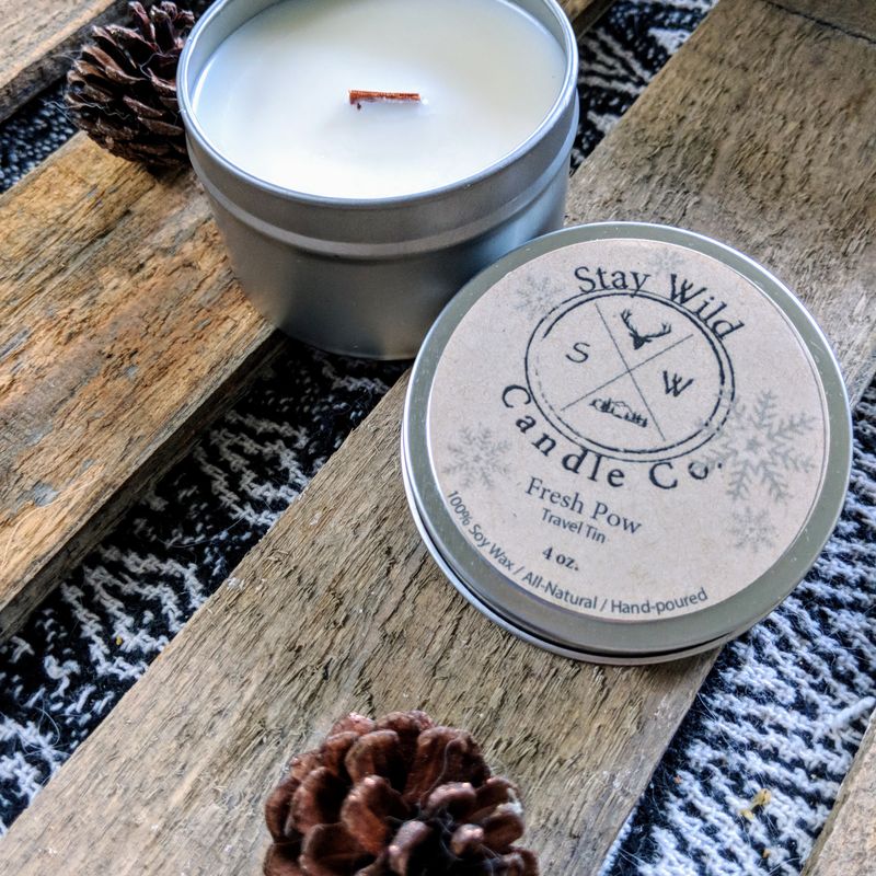 Fresh Pow _Travel Tin Soy Candle with Wooden Wick